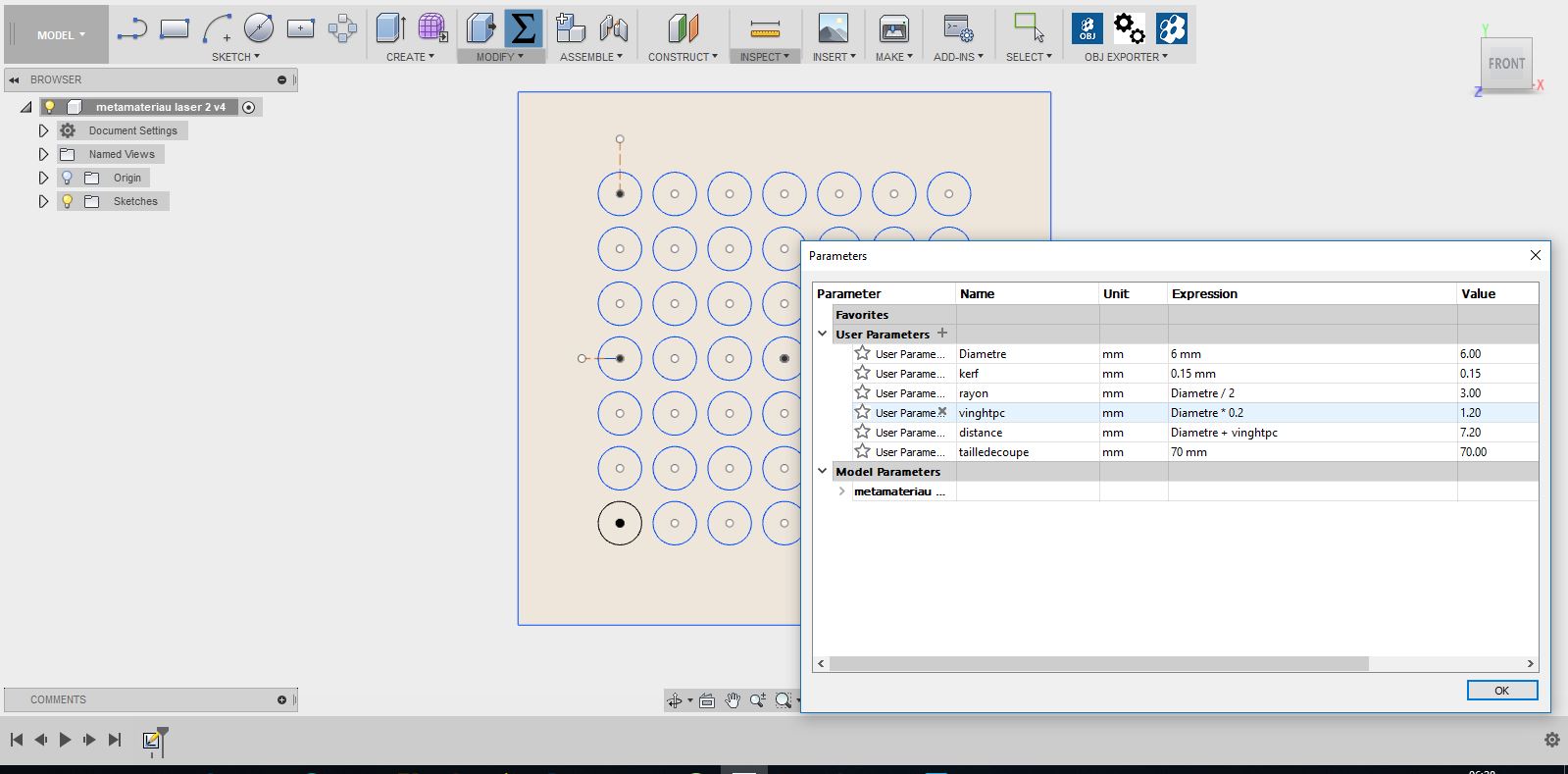 I drew the mold in Fusion by setting the basic dimensions: diameter, distance between, cylinders, kerf of the machine.