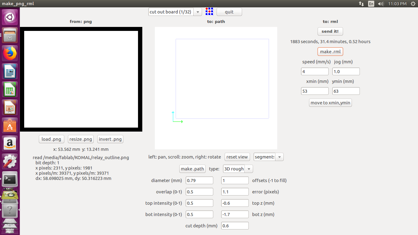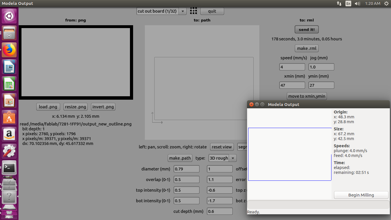 6.Now i start my milling with properly attached the PCB along the machine working body.