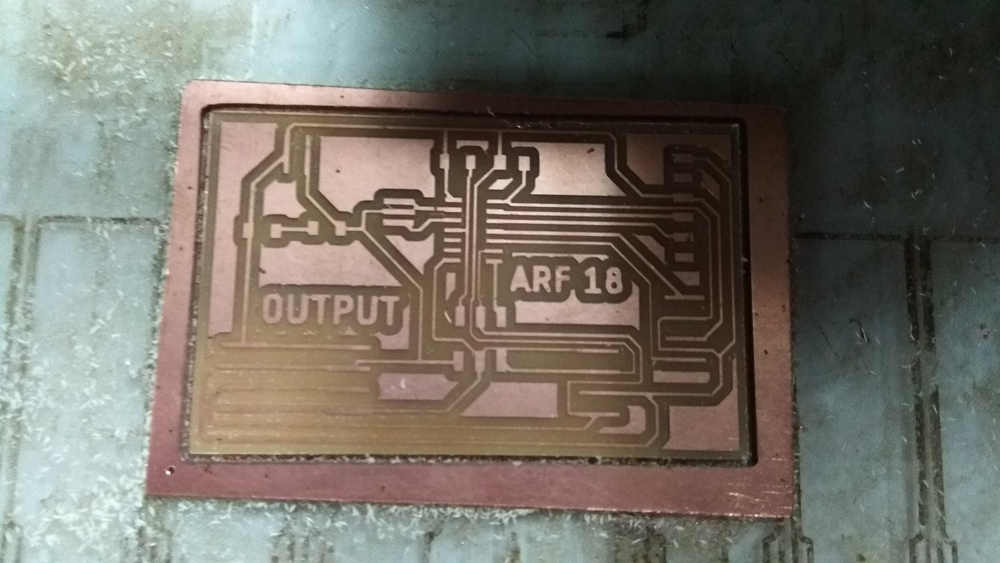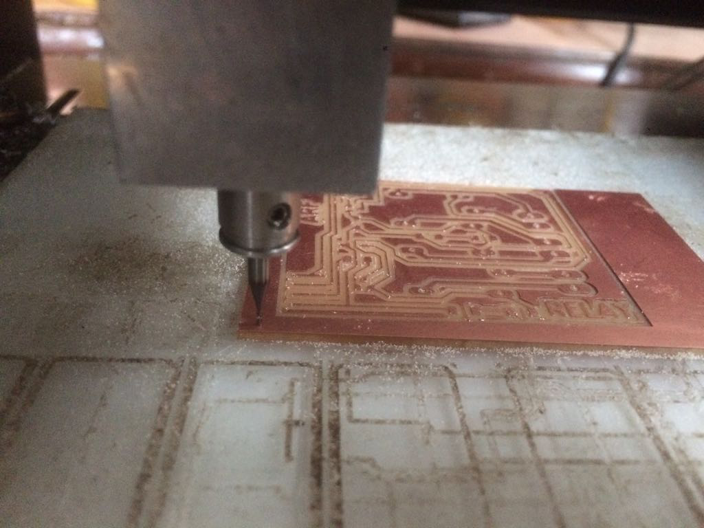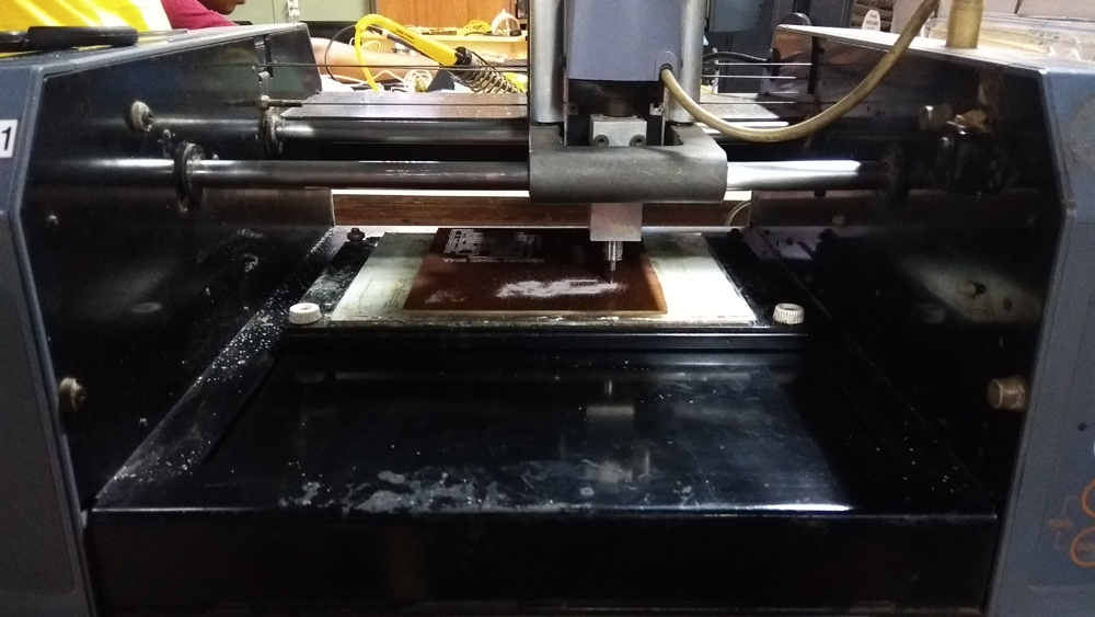 7.Now i start my milling with properly attached the PCB along the machine working body.