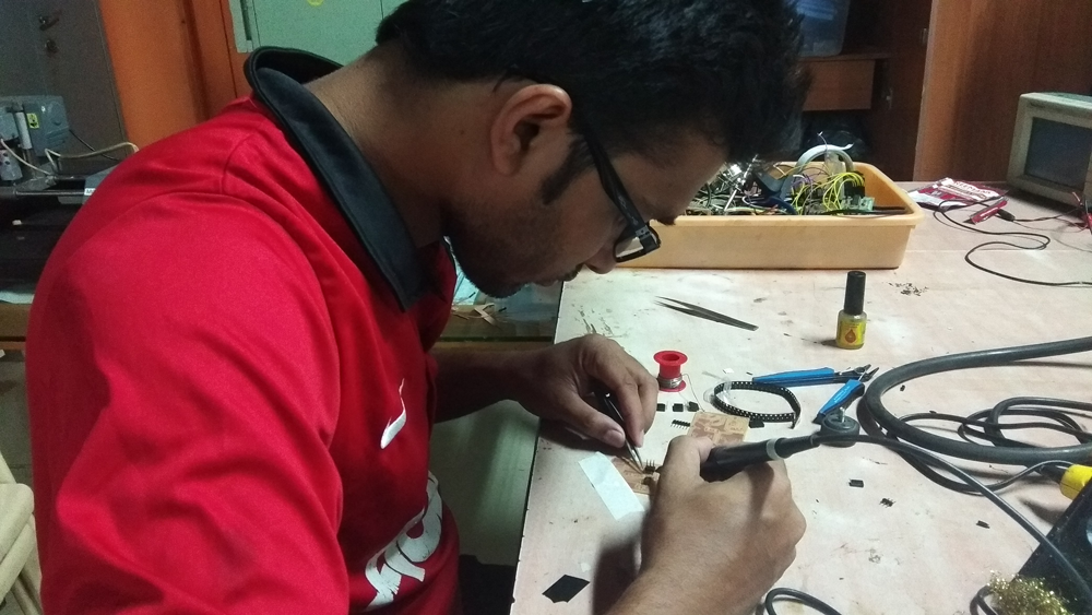 11. Then i going to soldering and here i used one 0 ohm resistor in the wiped trace.