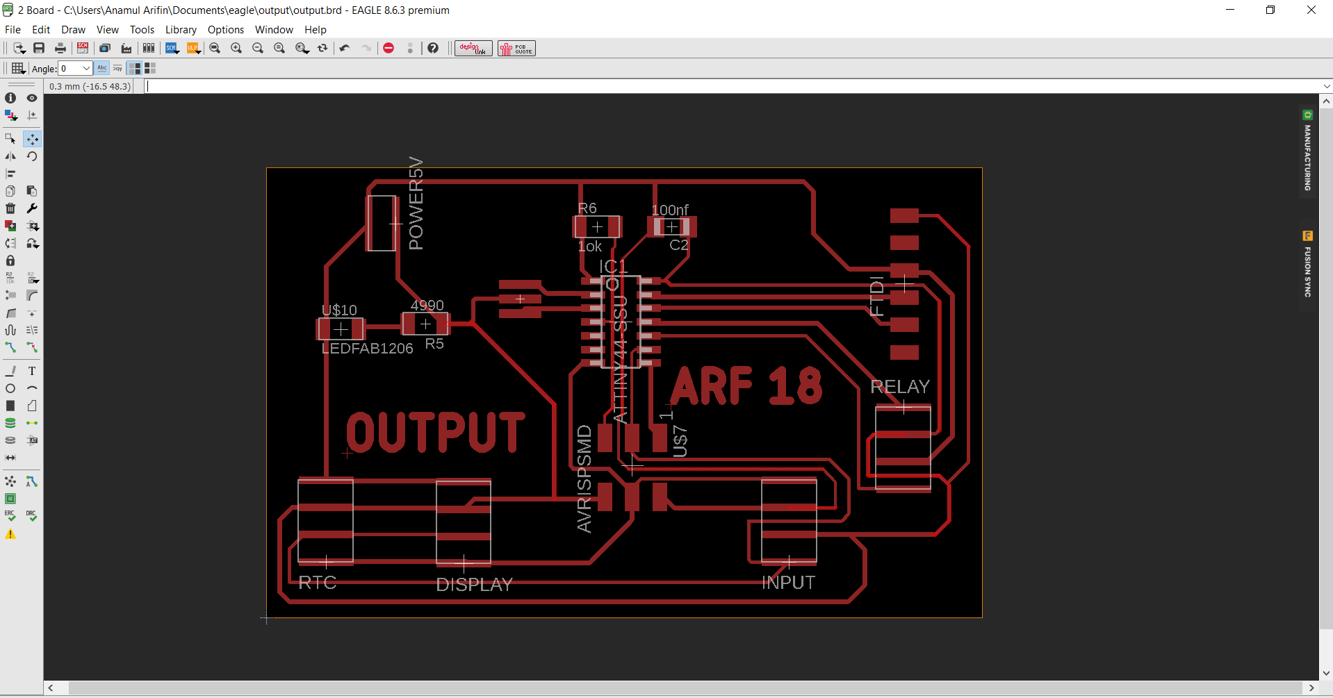 Output Board PCB making: For PCB making i follow the process which i was learned from the electronic design assignment. Check in the below about output and relay board images and description about how i was made this.