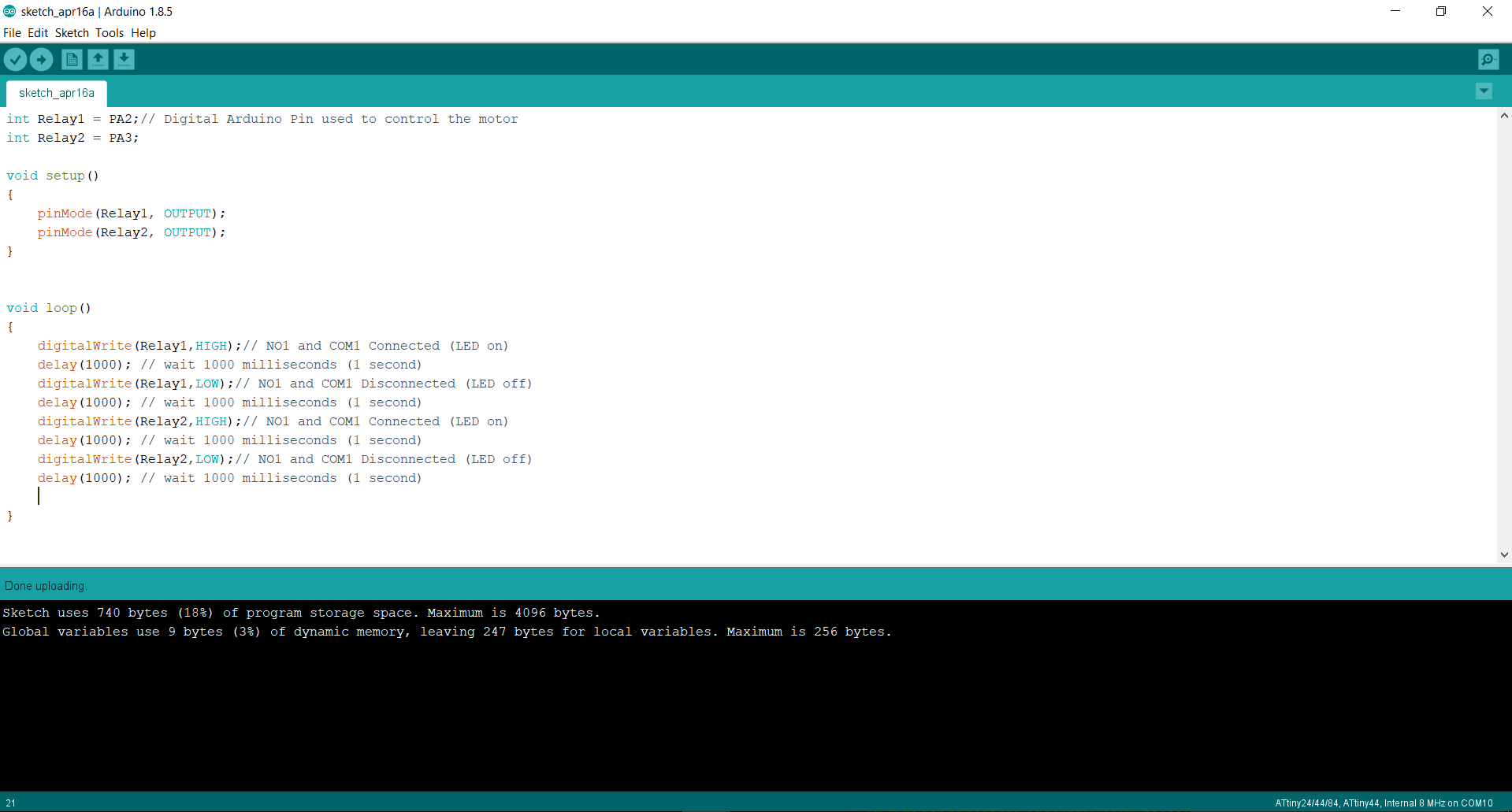 4.Now I'm programming the board for testing the relay is working or not, Now i have no output device (but i ordered in on-line), Is there is nothing to show proper inventory. Here we delivered the pin no and the signal value High and Low.
