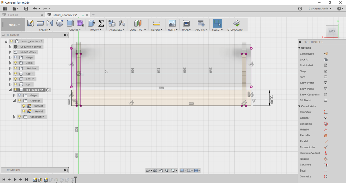 1. First make top panel of stand and set up the unit in parametric in mm units