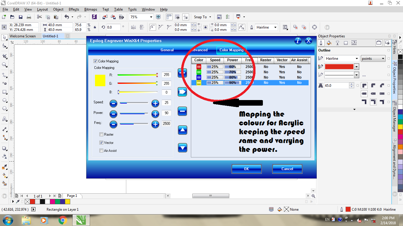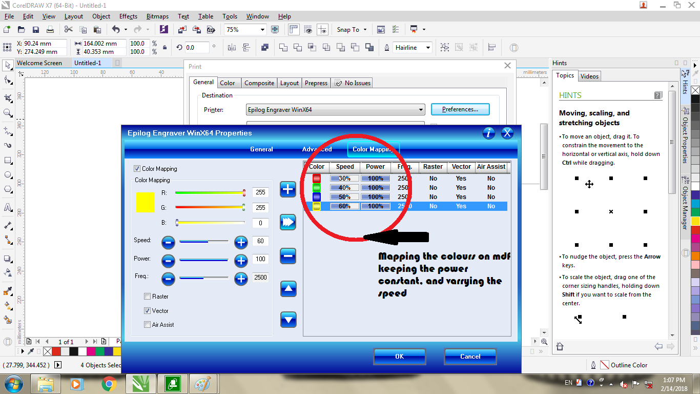 MDF:For this we decided to keep the power constant, and vary the speed between the range of 30 to 60 percent as shown in the image about color mapping