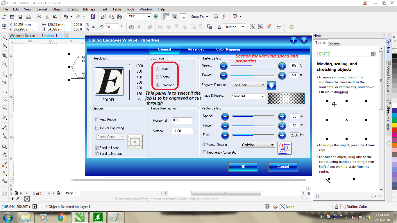 For this assignment we are going to test the similar pattern design and by the once we kept constant speed, and later constant power for differentiation the kerf We uses the different color boundary and specified individually .