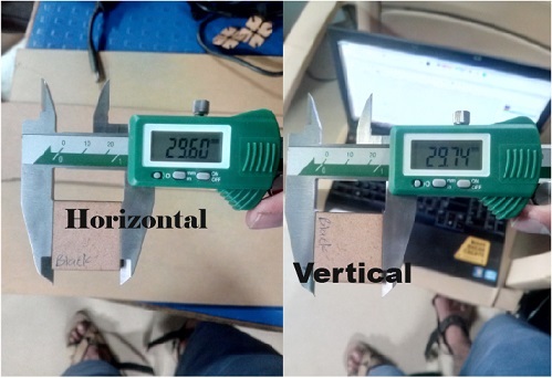 The following were the results we received about the deflection in the kerf Out of which we concluded that 100% power and 50% speed was ideal for minimal kerf of 0.14mm