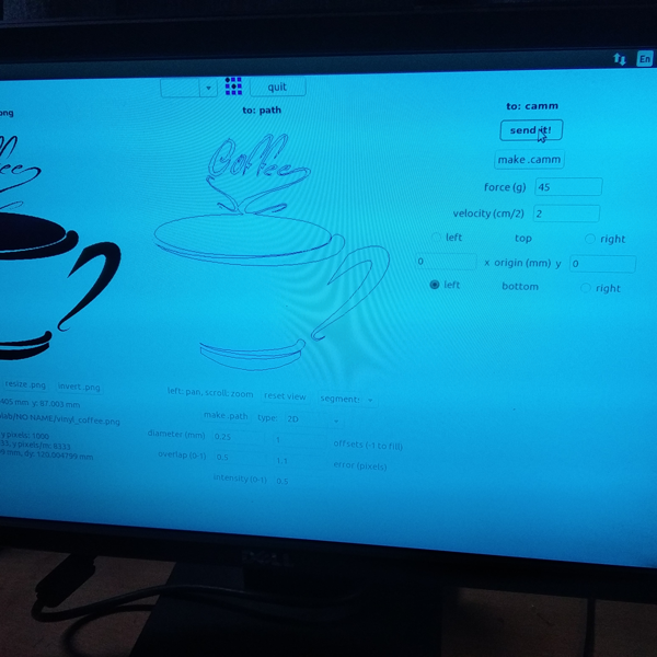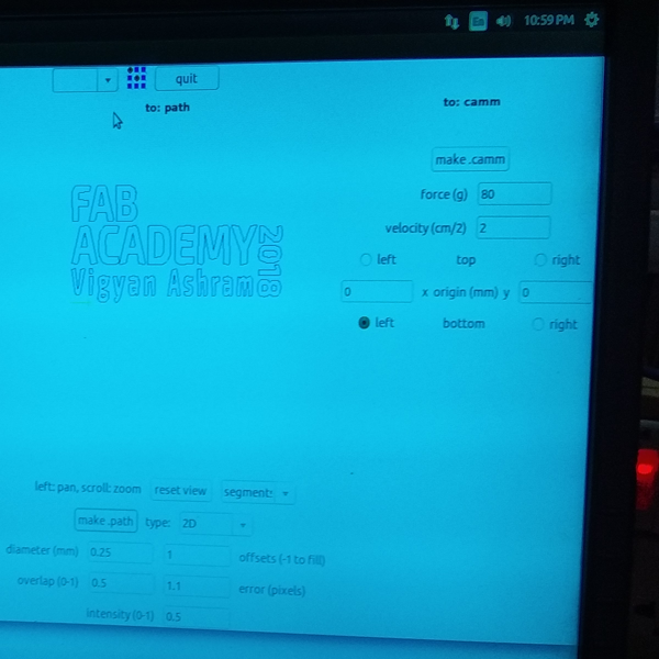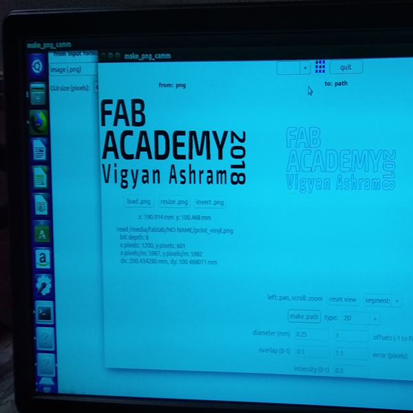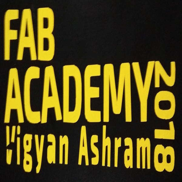 This is my first vinyl cutting, before cutting I have curiosity about vinyl how it's works. First i make a text design by illustrator named "FAB ACADEMy2018, VIGYAN ASHRAM". make a .png file and I use Fab Module to run the program. Now setting the vinyl paper and home origin the blade according the paper. But I made mistake here I don't check the vinyl where it is good or i has any previous cut. so after final cut when I peeling out by tweezer then I found a cut in V which is destroy my whole design. Image attached in below