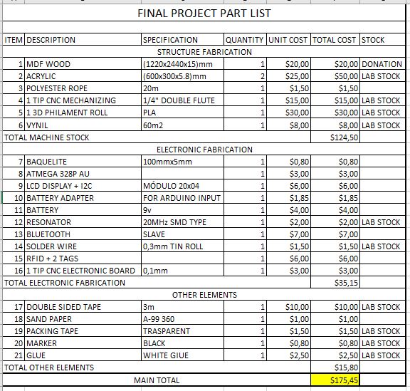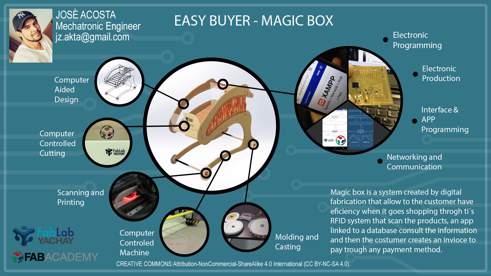 In many countries around the world, sometimes when we visit to the supermarket, we find a small inconvenience when want to pay, if the day that we go shopping corresponds to a discounts season, payment day, weekends, holidays, etc., it is complicated!!. The time lost while we wait in the queue is around 40 minutes to 2 or more hours approximately. So, using digital revolutions technologies like digital fabrication I have identified and propoused to develop a solution for the people that could avoid the stress for waiting the payment with a simple system that let the people do this activity faster and without losing time