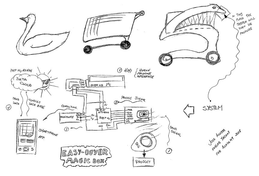 A prototype or project is born mainly from an idea, for this reason is that when starting the program FabAcademy had another initial idea to develop as a final project, which is detailed in the following sketch that I drew.