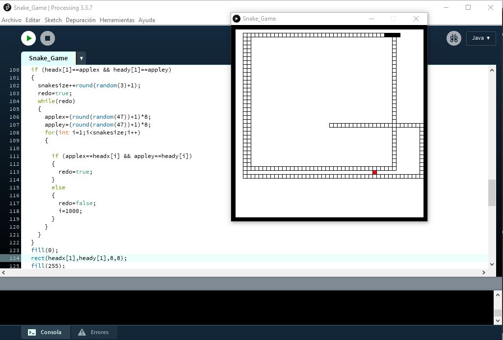 To appreciate the potential of the program, I share a game application, created by Ian151. The application consists of the classic game of the snake, the reason for the following activity is to validate the shared programming and to know the potentiality of Processing.