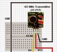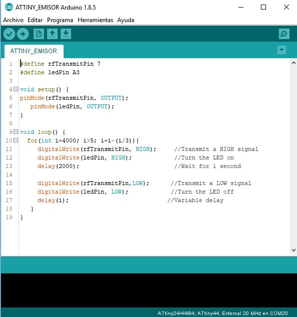 The program consists of the following: the emitting device will send a signal accompanied by a blink of LED (blue) by radiofrequency at 433MHz and the receiving device will be in charge of receiving the signal and replicating it in the receiver circuit, using its LED (network). The emitting device uses a power supply of five volts, and our FTDI power cable provides only 3.3v so it is important that a device is used as an external source to power this device.