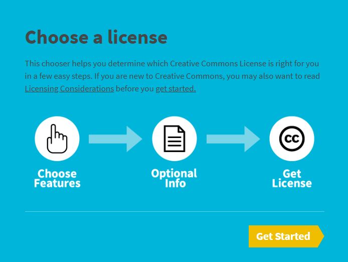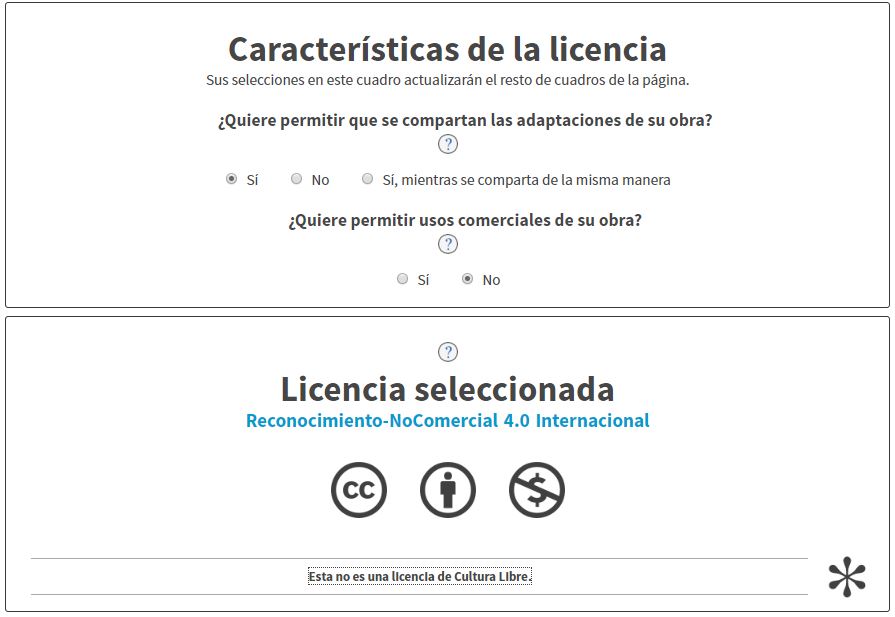 Next I show the process of selection of the license in the page of Creative Commons