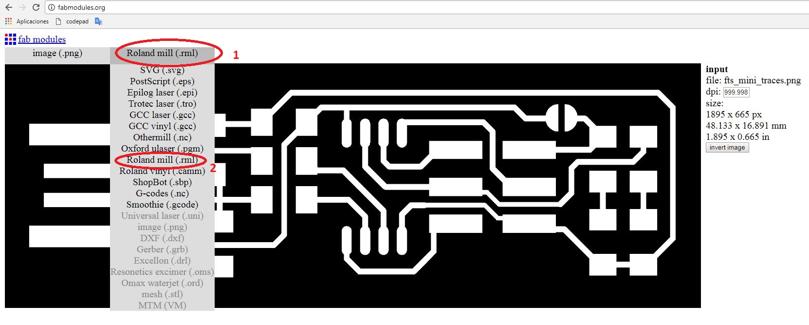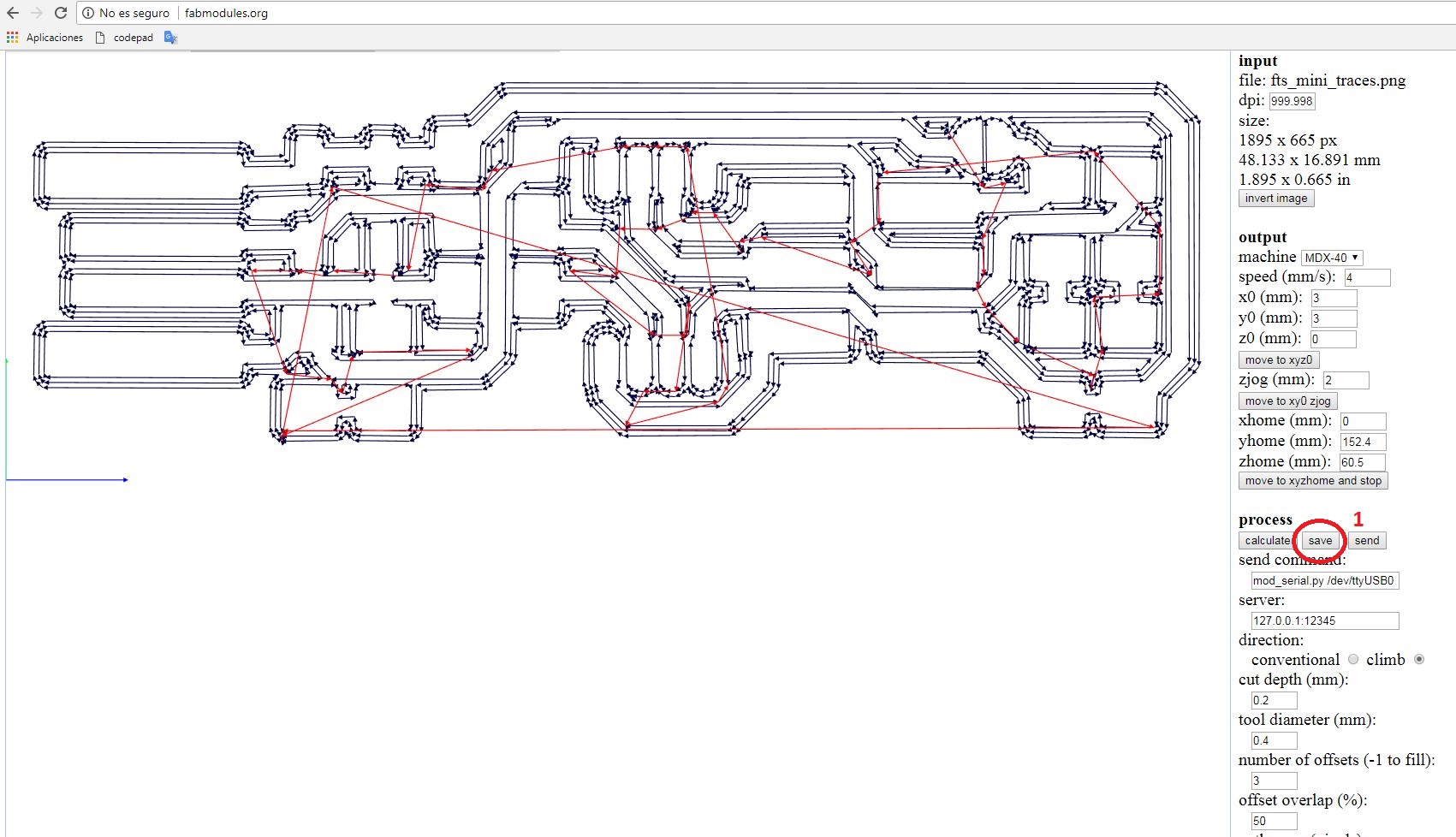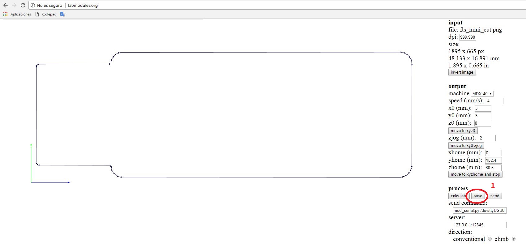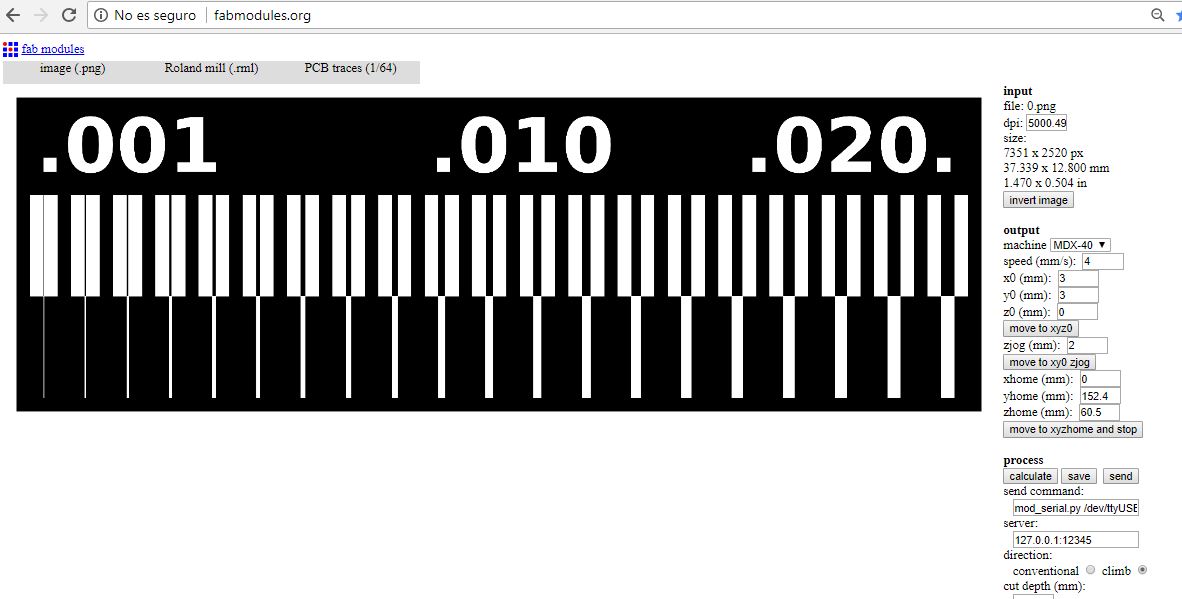Now we are going to carry out the same activity but to cut the electronic board, we must configure the milling tip to 1/32 ", in the fabmodules webpage we will perform the same previous activity but we will select the following parameters that are shown below.