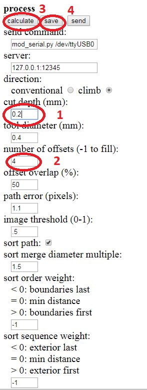 Once with the generated files, we load them into the engraving software, and proceed to mechanize them.