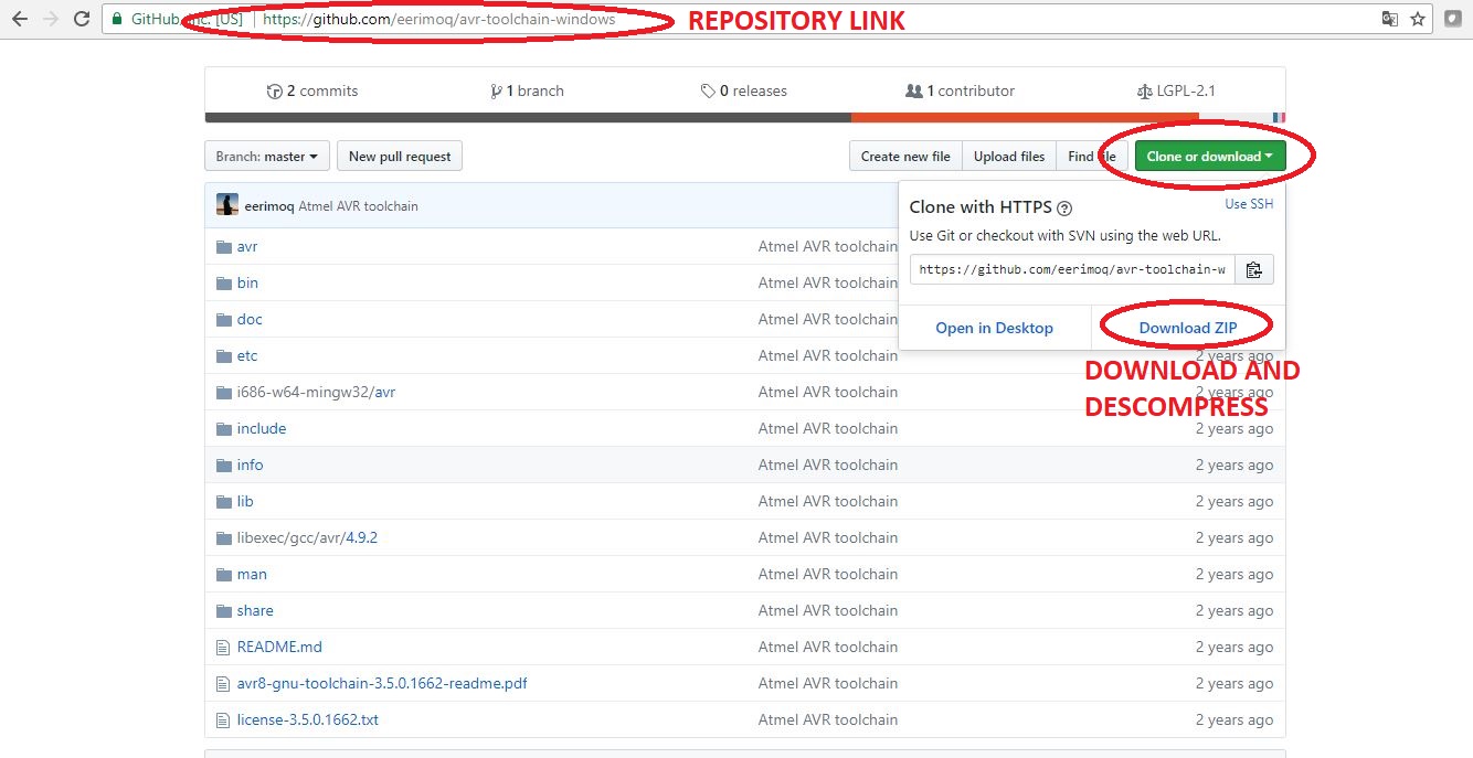 First, I need to download and install the Atmel AVR Toolchain for Windows. I found this repository in google, click here to go.