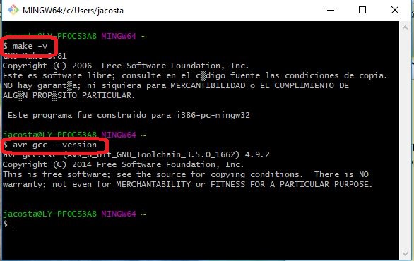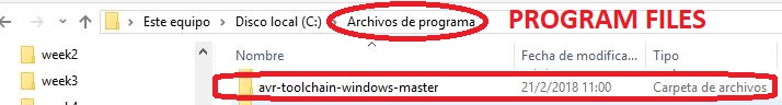 First problem. We don't have the "Atmel AVR Toolchain for Windows" in the tutorial, so the solution was search a recent file in google or any other searching platform according to our machines conectivity, I found here.