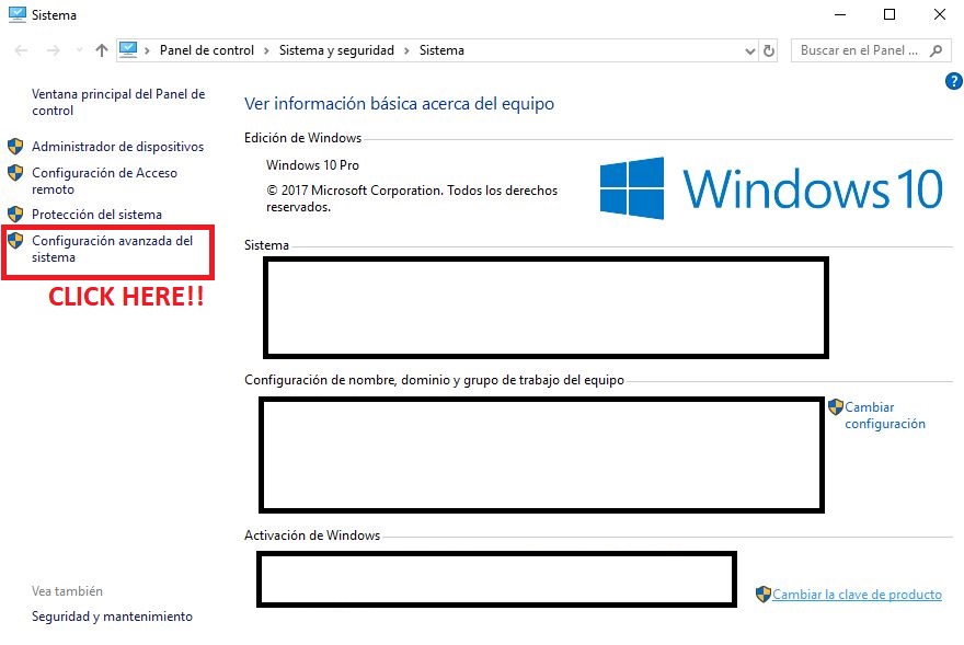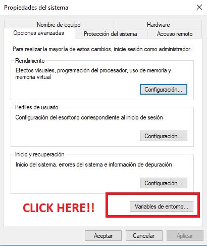 Now, it's important to update the PATH, let's specify the routes in which the interpreter of the commands should look for the programs to execute. Let's go to Start Menú, then left click on file explorer, then More and properties. Then I'll have this window opened: