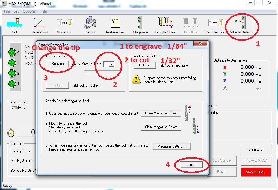 It is important to designate the milling tip according to the activity to be performed, for engraving the electronic boards it is recommended to use 1/64 "tip and for cutting the board it is recommended to use 1/32" tip.