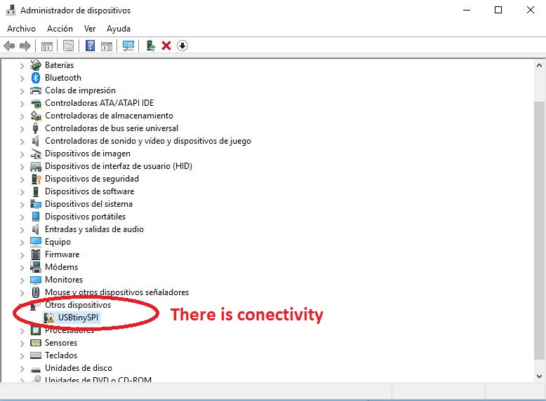 To confirm all the activity, I will check the programmer conectivity plugging to the USB port and confirming in device managment: