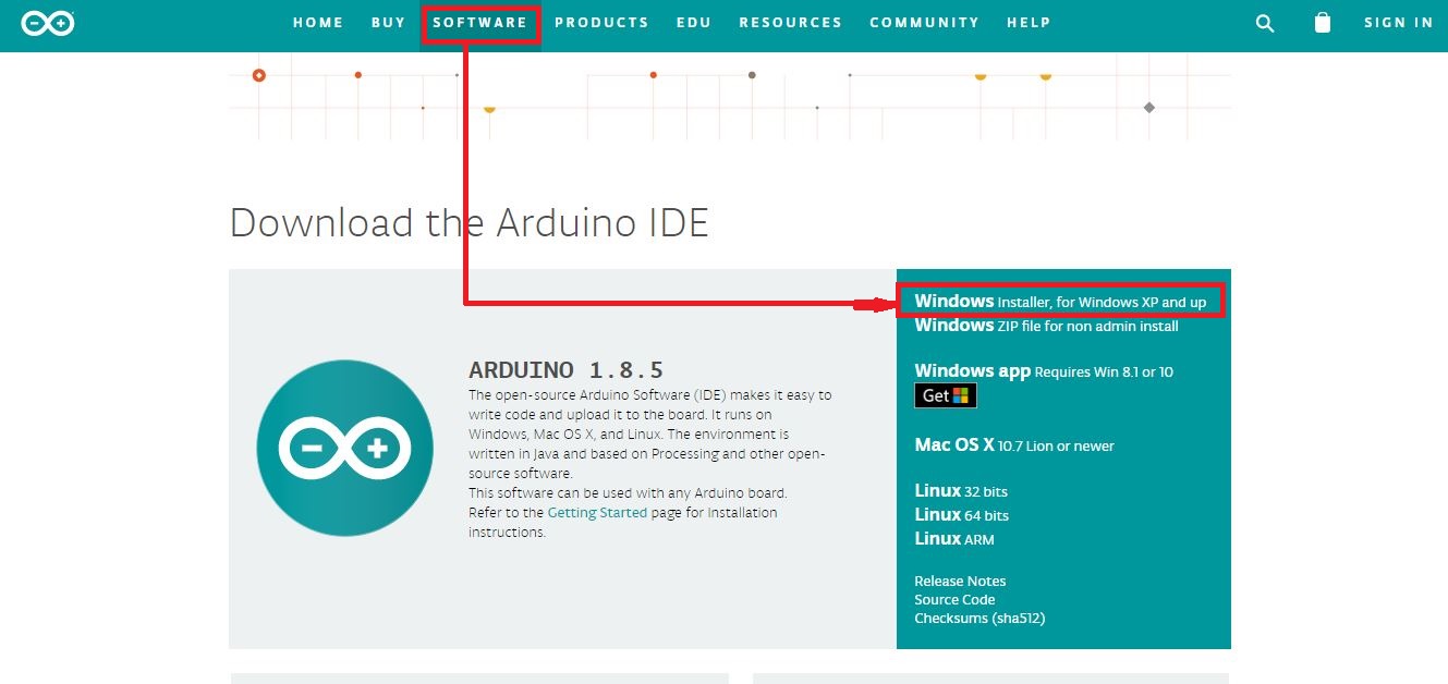 We will start the programming of the board by installing the Arduino IDE, for this we will download the programming software, enter the arduno.cc page and download the Arduino IDE installer.