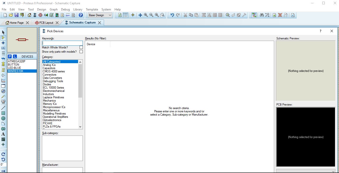 Then we look for each of the electronic devices in the software repository and leave them in the workspace and make the corresponding connections