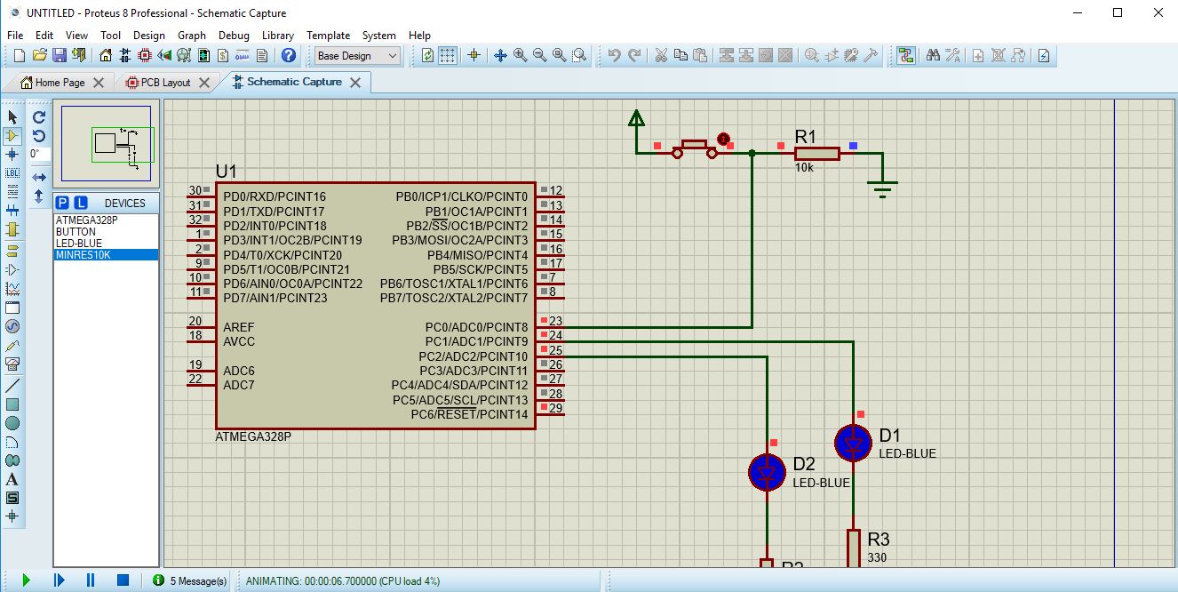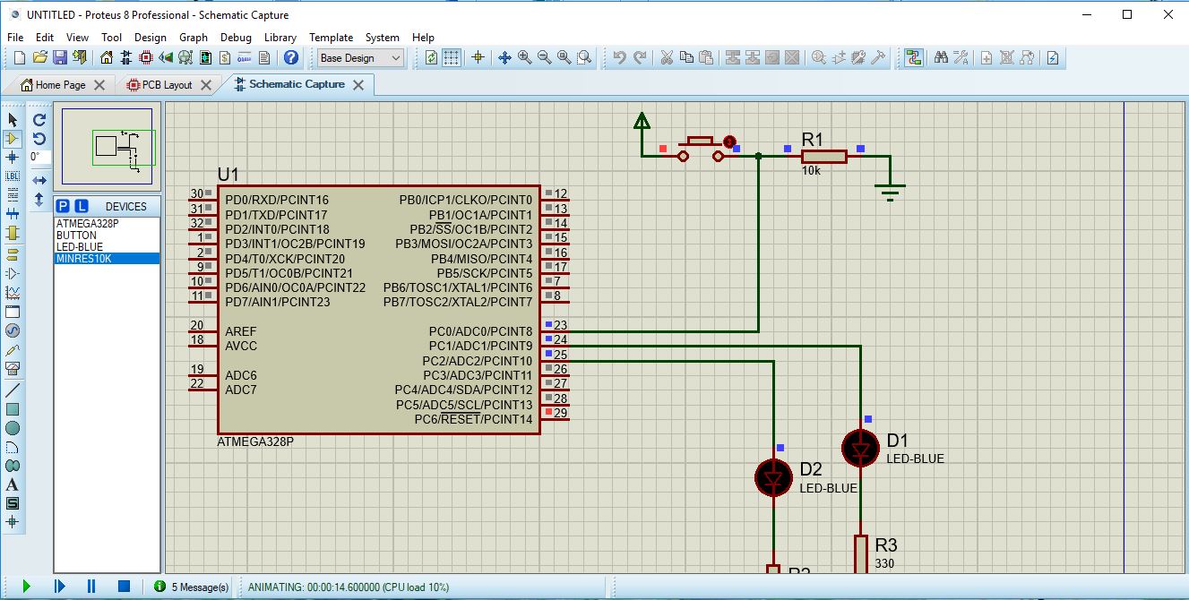 PUSH BUTTON AND TWO LEDS