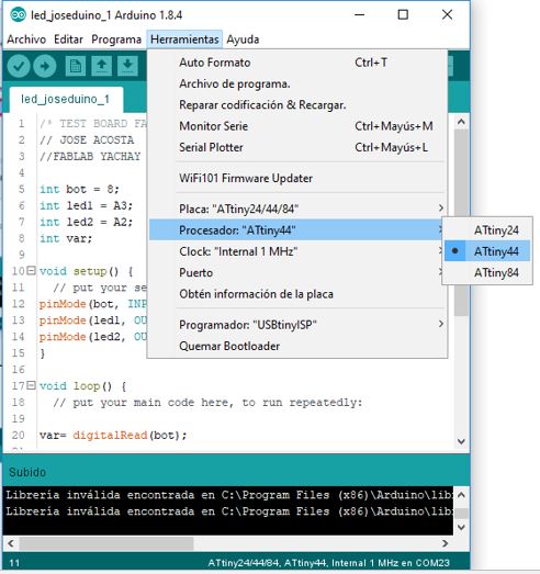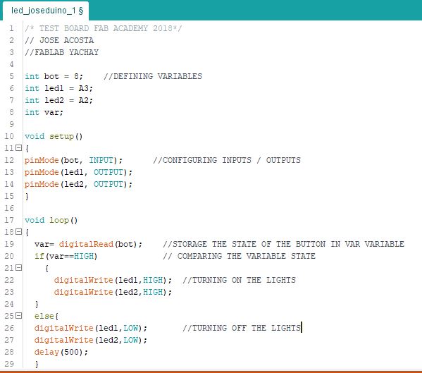 Once the configuration of the workspace is done, the programming of the plate's operation test created in the electronic design week is carried out.