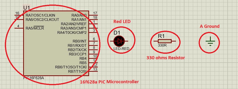 For this activity, we will use a PIC 16f628a microcontroller, a led, a resistance of 330 ohms, it is necessary to indicate that the programming made in Proteus will be simulated.