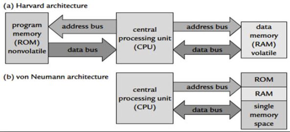 Harvard architecture has separate data and instruction busses, allowing transfers to be performed simultaneously on both busses. A von Neumann architecture has only one bus which is used for both data transfers and instruction fetches, and therefore data transfers and instruction fetches must be scheduled - they can not be performed at the same time.
