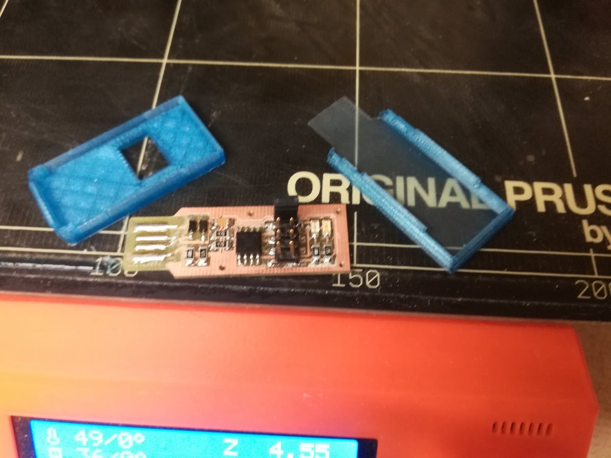 I designed a case for my ISP in FreeCAD. I wanted this design to be fairly general, so you can change a couple of parameters like the dimensions of your board, desired thickness of walls, or the size of openings. It took me a couple of iterations to get it right - mainly because I wanted it as small as possible, and made the walls too thin -, but now my board fits very well. I printed it on a Prusa i3 MK2.