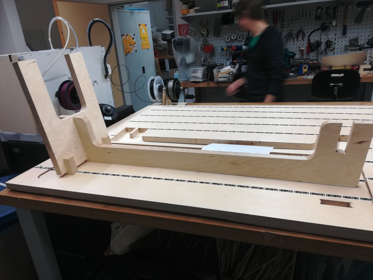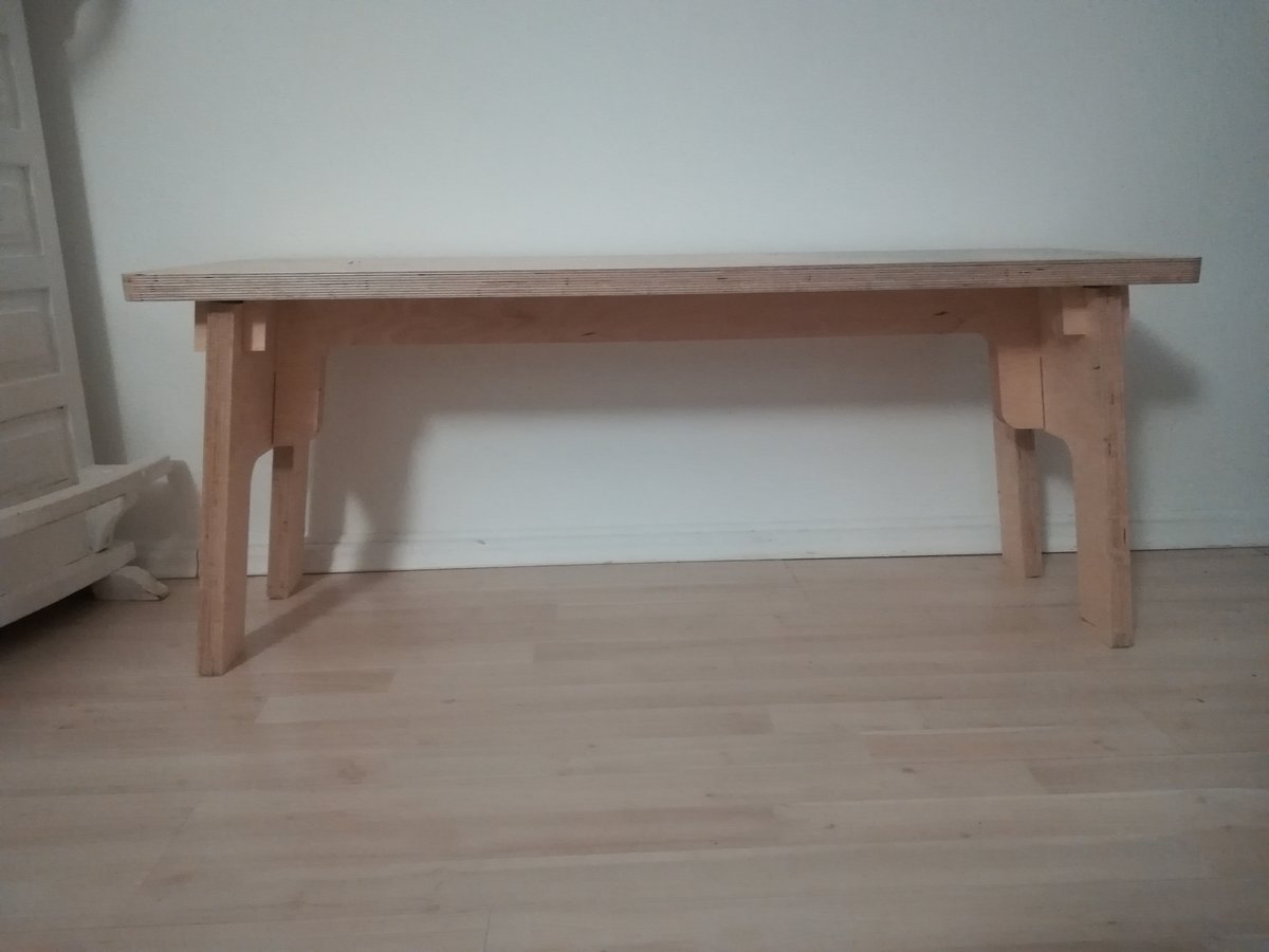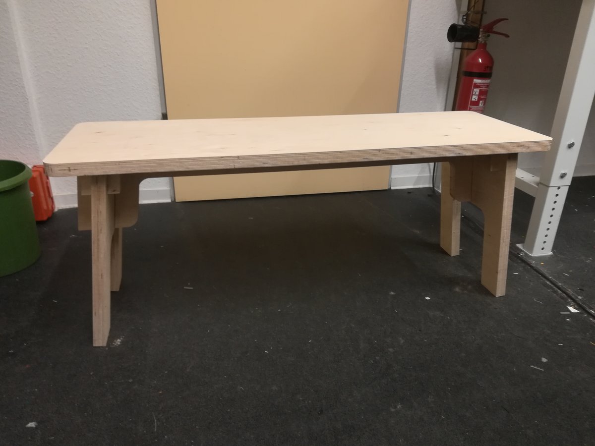 This week, we used a CNC mill to make something that's big and needs to be cut precisely. In my case, I built a bench out of three centimeter thick plywood that can be assembled without any screws or glue. The bench is about 120x45x40cm, but the design is parametric and should be adaptable to different sizes and material thicknesses.