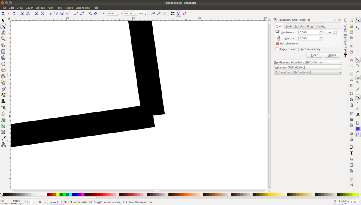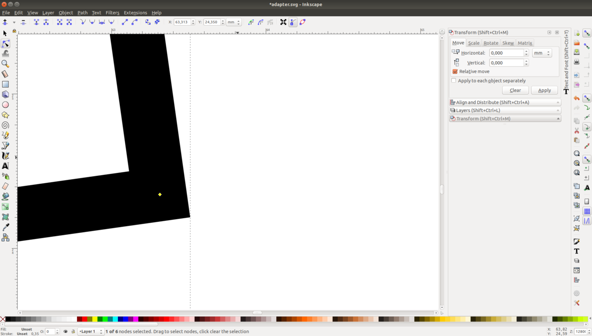 Actually, before milling it, I have to export it as a vector graphic. To this end, I created a drawing in FreeCAD that contained orthographic projections of the parts and exported that as an *.svg file. Unfortunately, the lines in the exported file were not connected, which led to problems with the CNC mill, so I had to edit them manually in Inkscape.