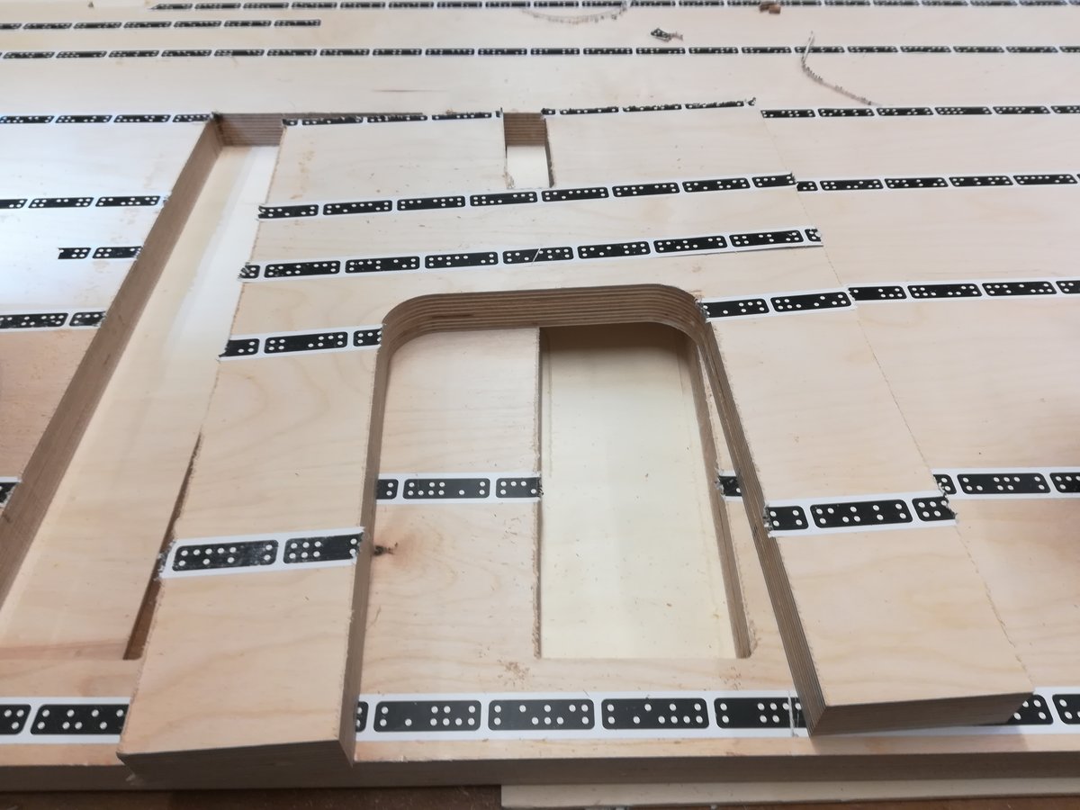 Phew! That's it for the design part. Now on to milling it, and hoping that everything will fit. Spoiler: it didn't, but I noticed early enough to make changes to the design. Which was easy, because it is parametric. The wood sheets were not exactly 3cm thick, but 2.9cm.