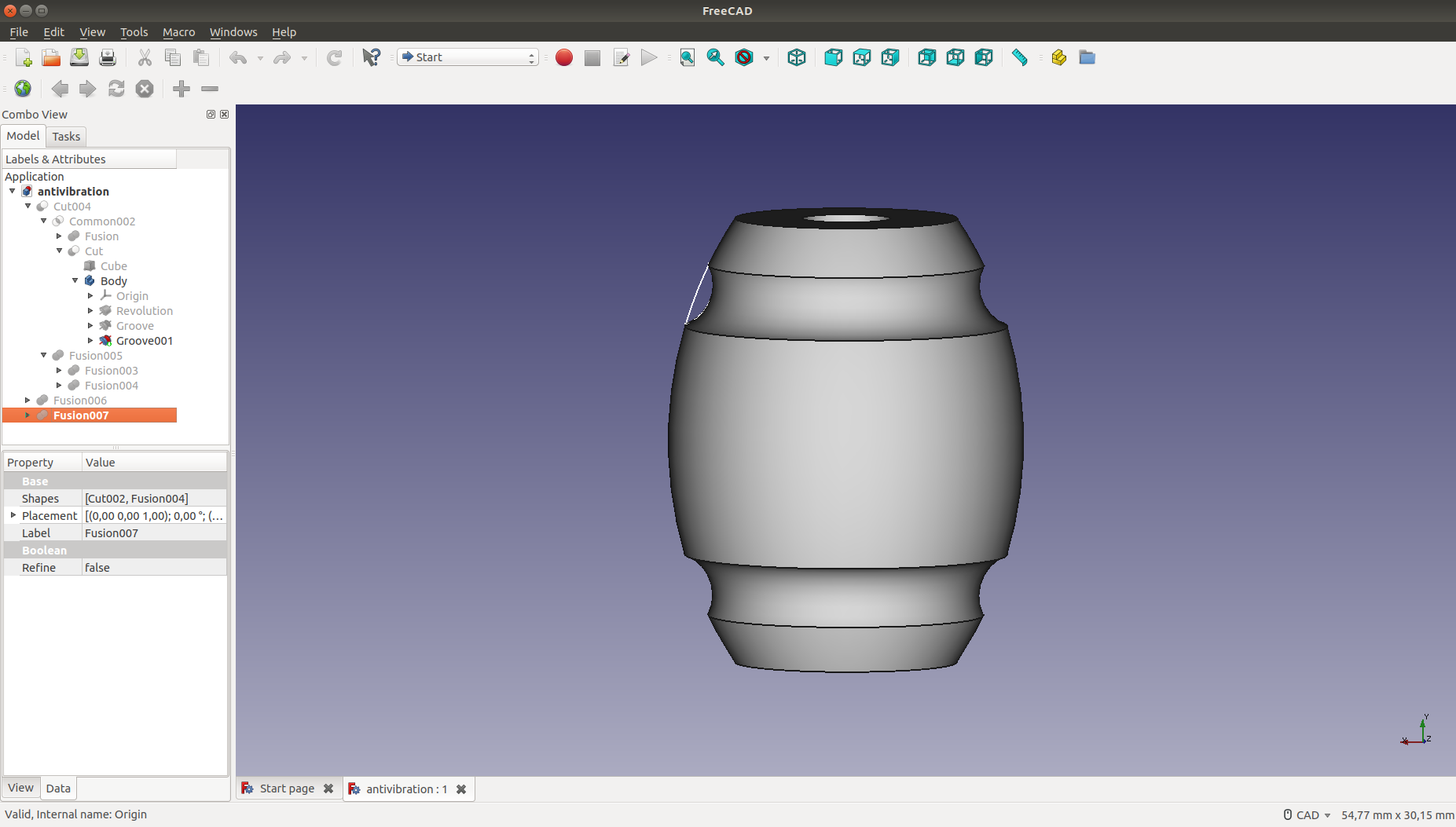 I designed a small vibration damping element in FreeCad that was intended for my final project. In fact I did mill the cast for the damper in this assignment, but in the end, I didn't use it in my final project. I created the damper design by rotating a sketch in FreeCAD. Then I created a cube on its left and right side each and subtracted the object from the cubes, resulting in two shapes that form a mold for the object. Then I added pins and pockets that hold both sides together.