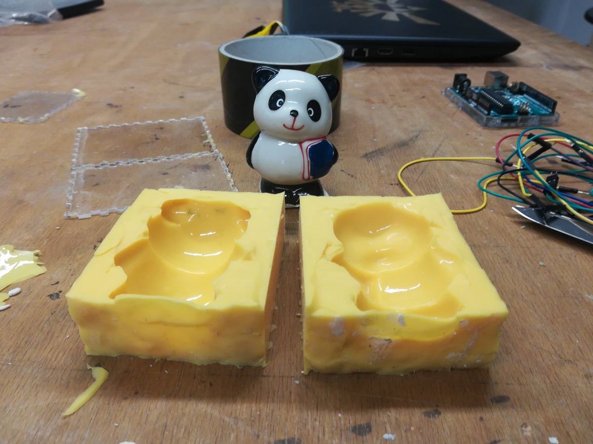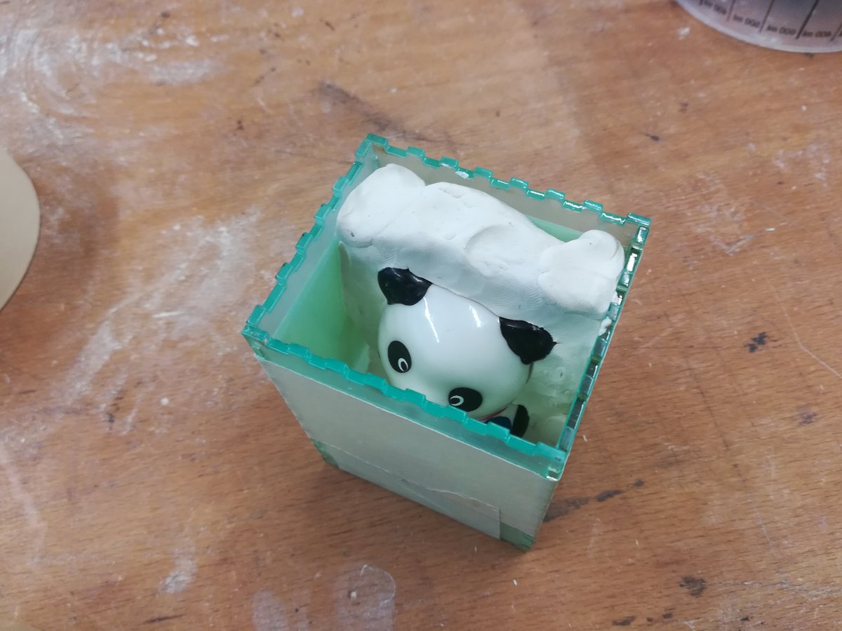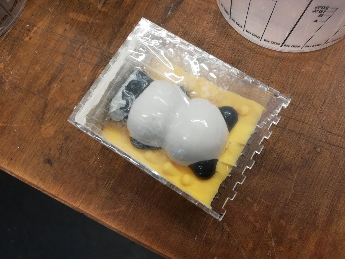 The objective of this assignment was to learn how to make molds and casts. I made a form to replicate a little panda figure, which I used to make a candle in the form of the figure. Also, I designed a mold to be milled by our CNC mill. The replicating mold is made out of silicone, the same material that we reviewed in our group assignment.