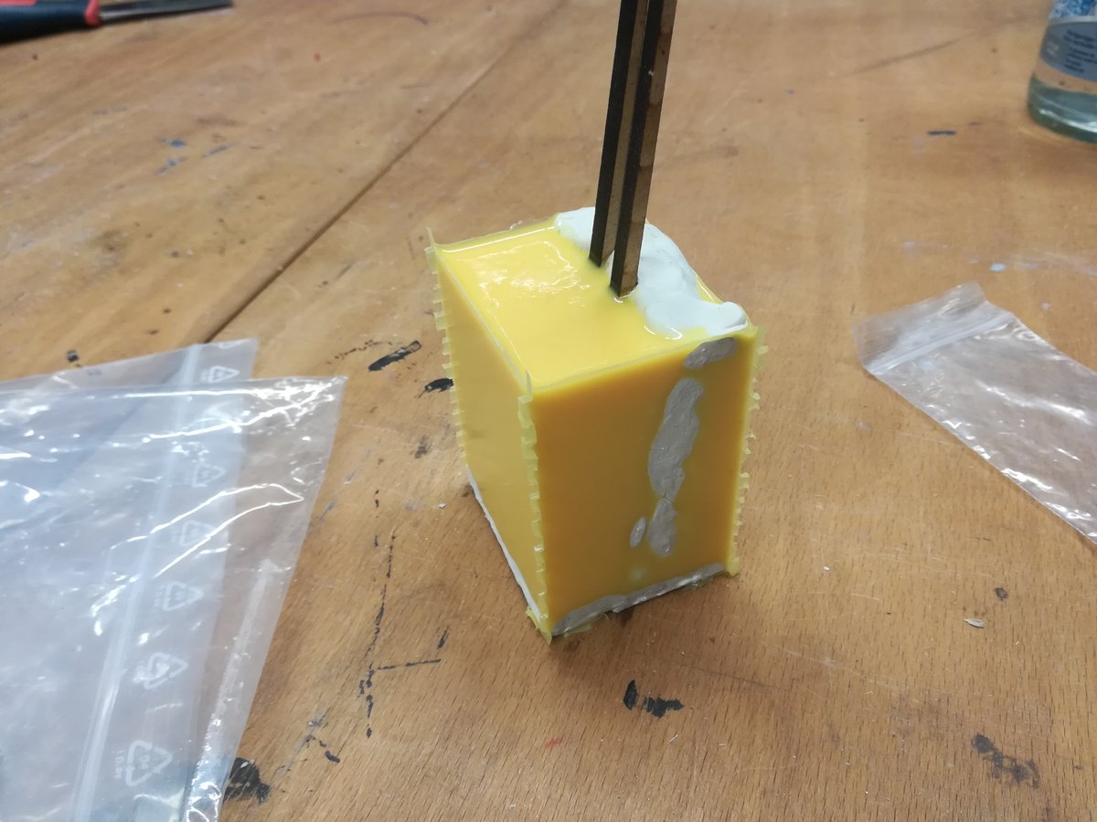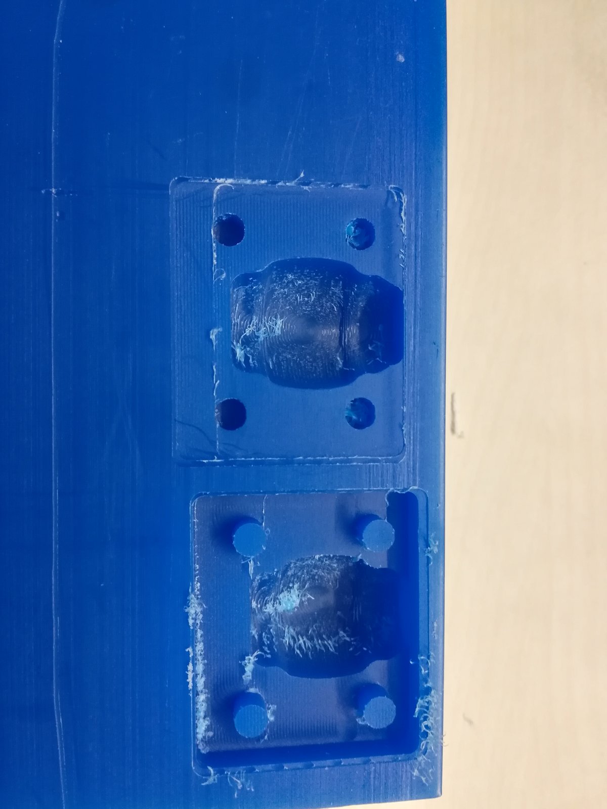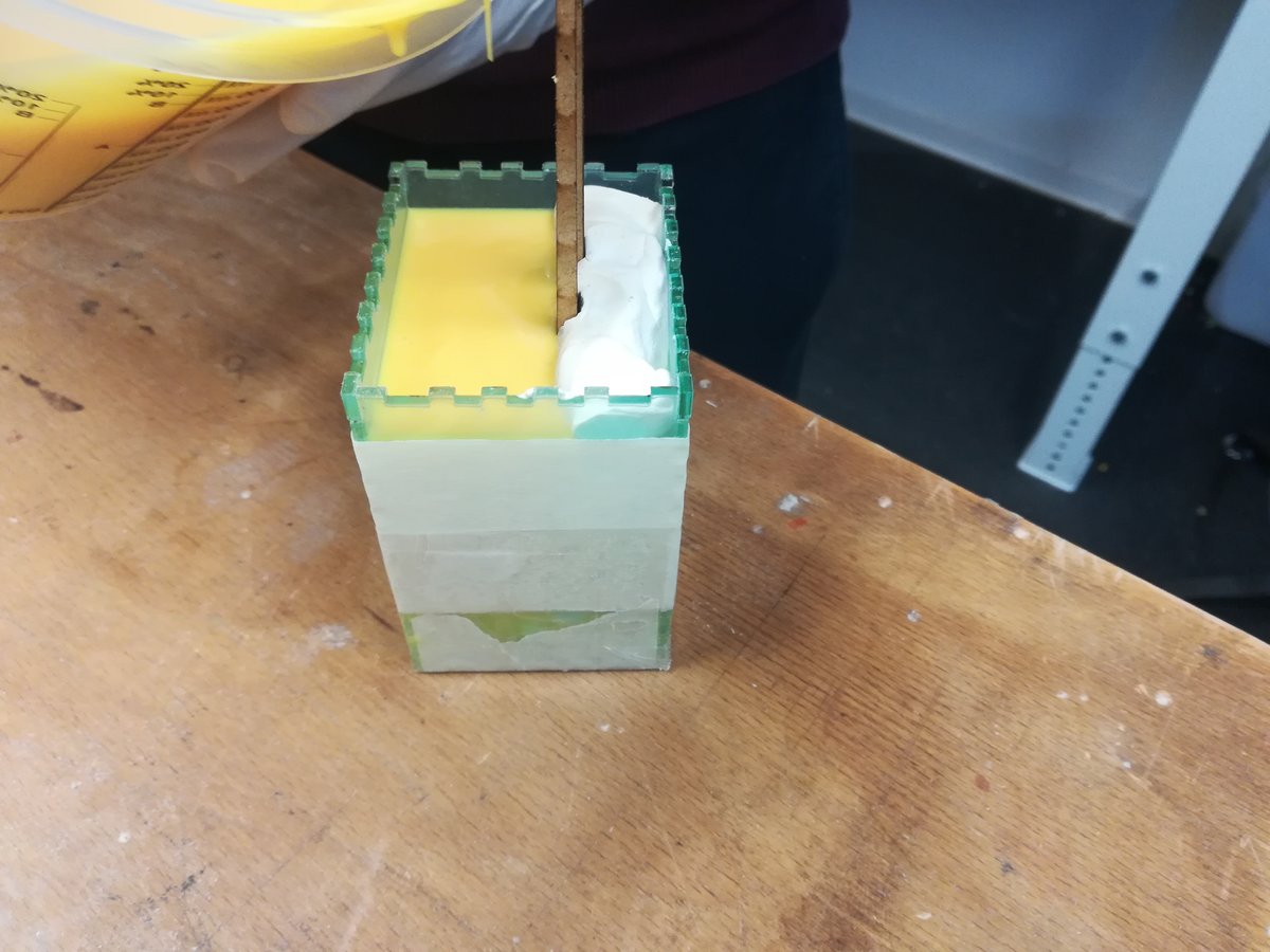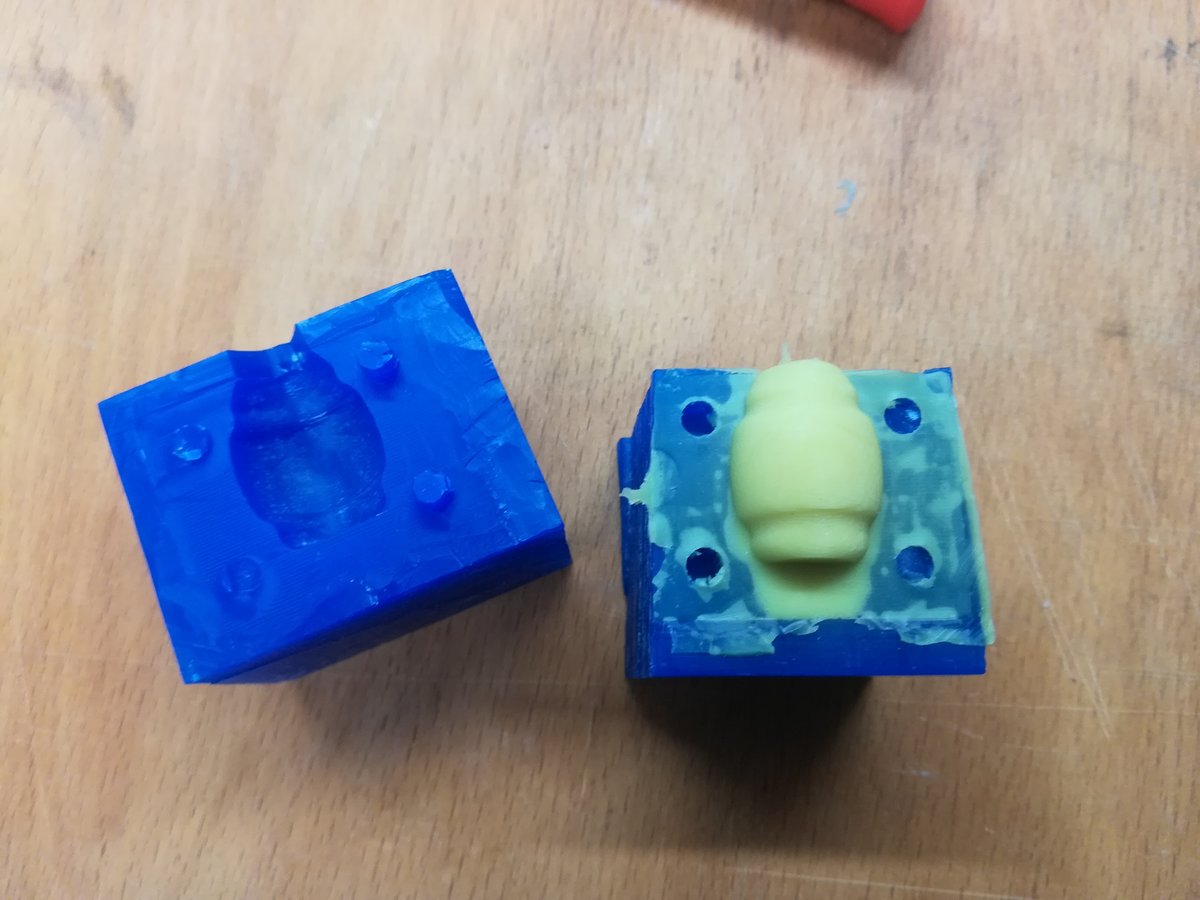 After removing the molds from the wax block, I mixed silicone (the same as I used for my other mold and the same that we used in the group assignment) to cast the vibration damper. The result looked nice enough, but I didn't have the time to integrate it with my final project.