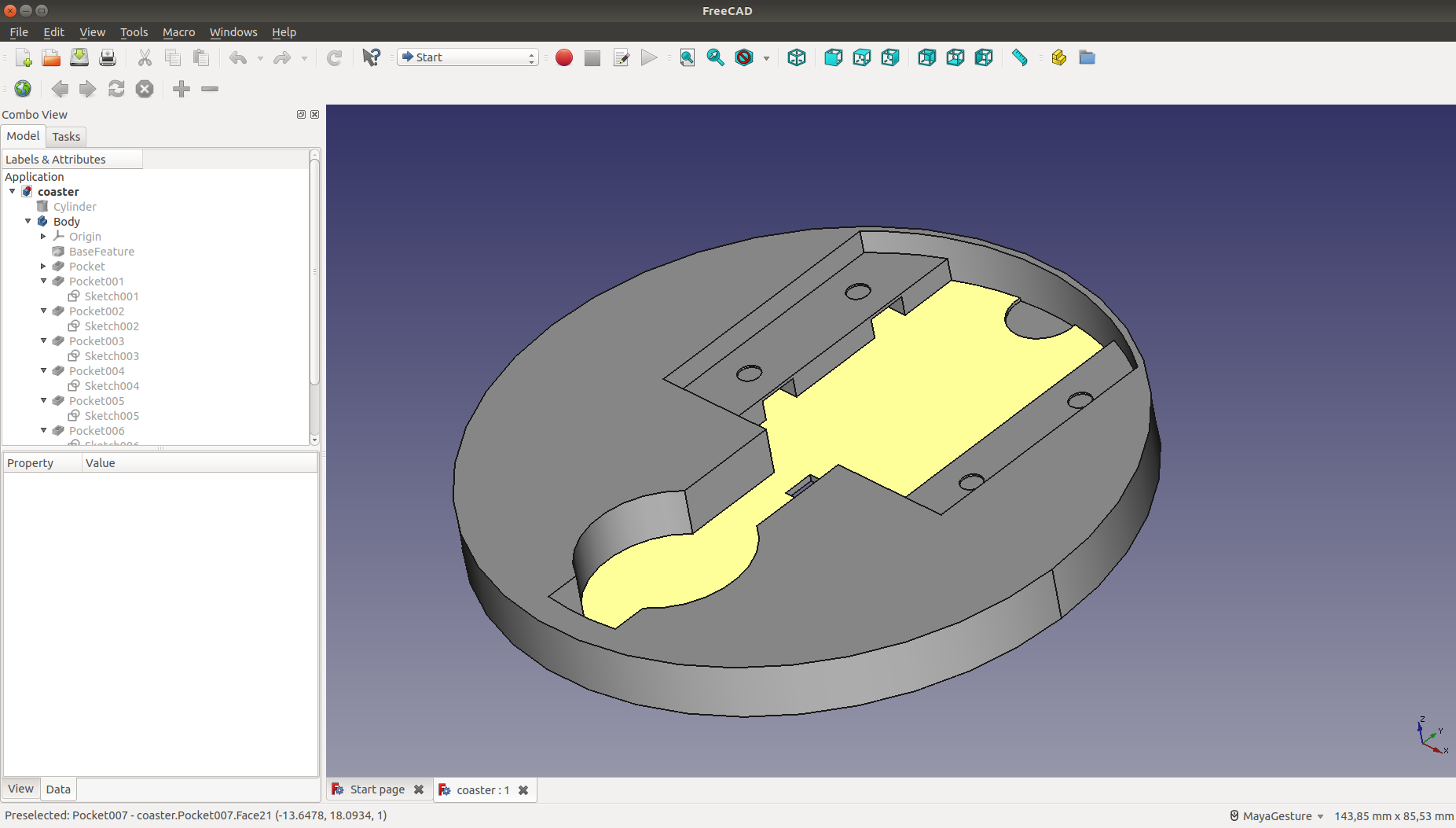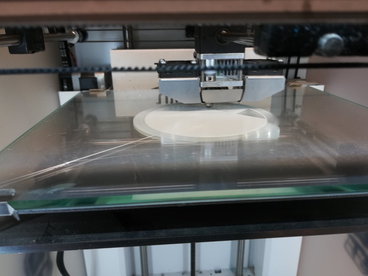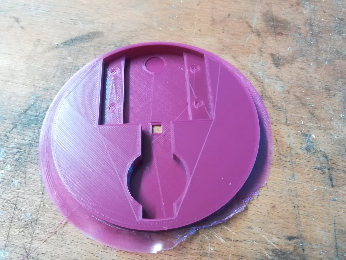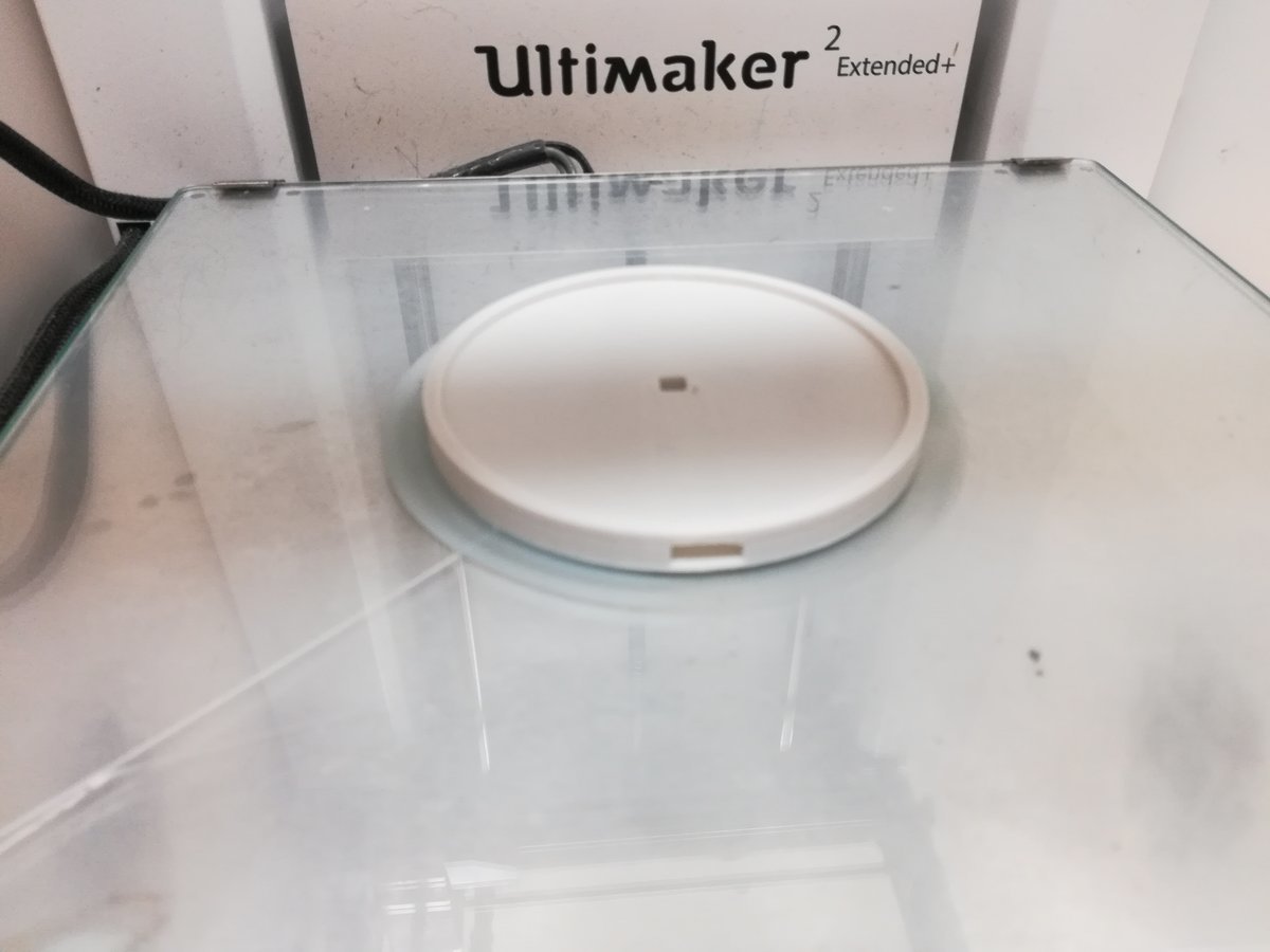I designed the coaster in FreeCad. It's really simple, just a cylinder with a slot in one side for the PCB and a hole in the middle for the temperature sensor. Printing it on an Ultimaker 2 Extended+ took a little more than 2 hours. I was actually surprised how well it turned out, since the upper part of the slot was printed without any support material.
