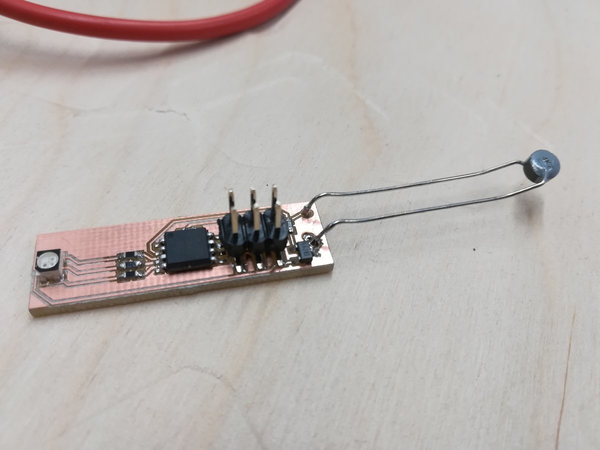 By this time, I'm not sure if my circuit is working as I think it is. So instead of making a third board (and possibly bricking it again), I set up a breadboard and started programming the Attiny. This way, I could start small (i.e. only one LED; three LEDs; three LEDs and thermistor) and check if everything worked out as I thought it would. It did. Hurray! But it took me quite some time to connect all the cables correctly, and it was definitely messier than a PCB.