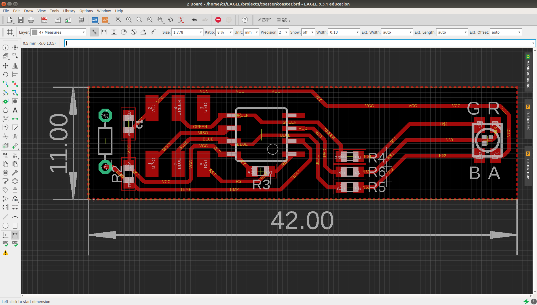 After programming, I have to remove the ISP header with a hot air gun so the board fits into the coaster.
