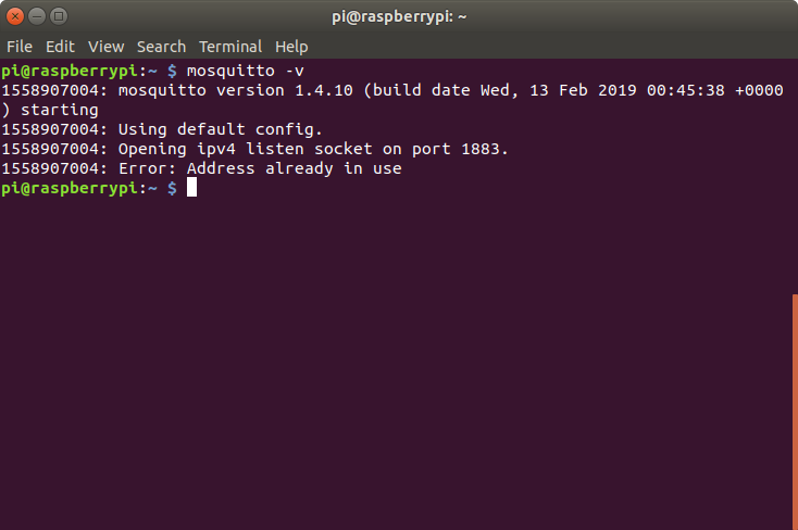 $ sudo apt-get update && sudo apt-get install mosquitto mosquitto-clients