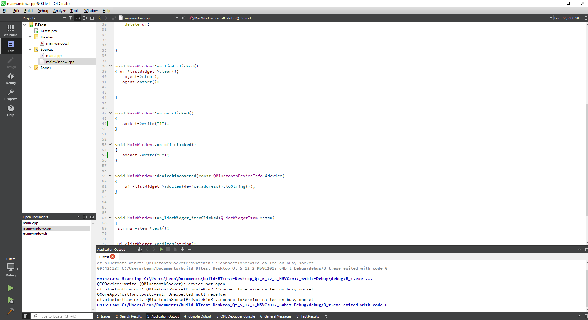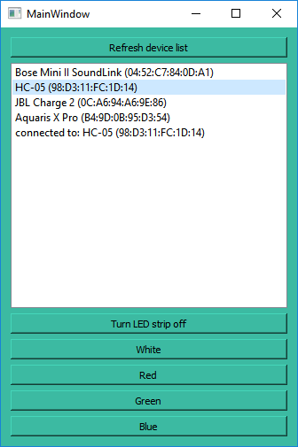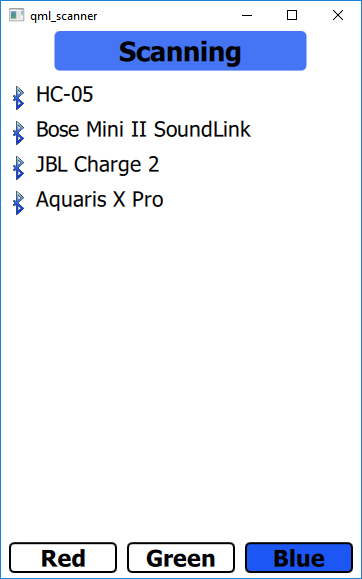 At this point I gave up on the qml app, even as a next step I could have connected the C++ Bluetooth class to the qml app, but this would also have been some work.