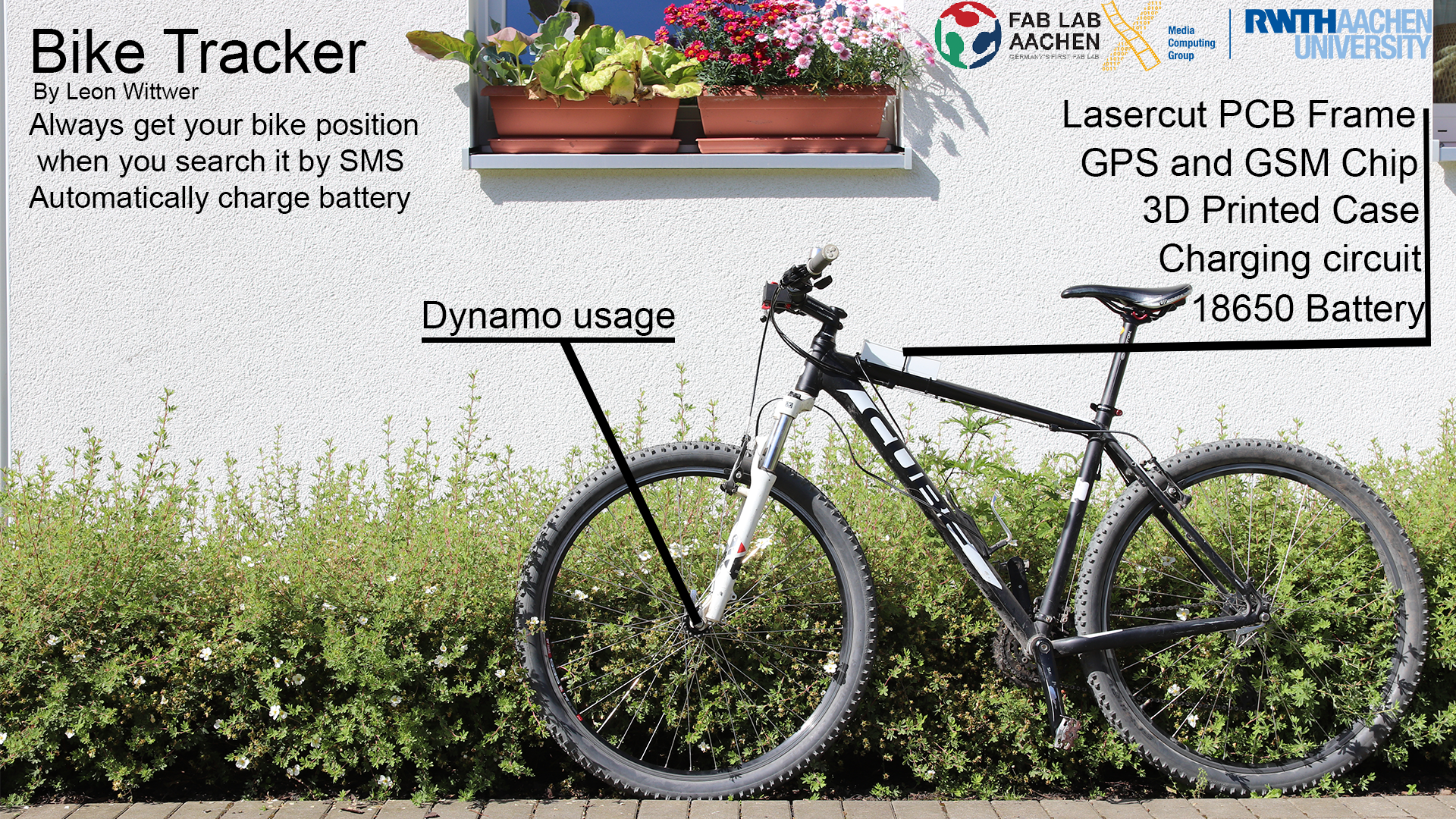 I really like my final project and will continue to work on it and use it in my everyday life, probably also putting it to bikes of my family to protect them from being stolen. But on the other hand, I do not plan to make it a commercially available product. This is because there are already products available on the market, for both parts of my project. There are devices who charge a battery/phone by the hub dynamo and there are bike trackers with a battery that lasts around a year. So for this, I can't file a patent, because I didn't do anything new. I also don't plan to produce and sell it.