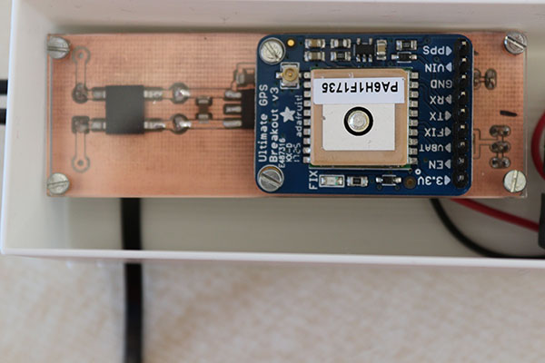 The search for the GPS module then was much easier, as I did know that I wouldn't be able to fit the tracker into the frame. But I decided to go with the smallest I found, which was the Adafruit Ultimate GPS module. This is an incredibly small chip and antenna, everything integrated to the size of the antenna. Which itself is very small for a GPS antenna. Unfortunately Mouser didn't stock this item so I needed to go with the same module already on a small breakout board. But the module without the breakout board would definitely fit into the bike frame, which is very good.