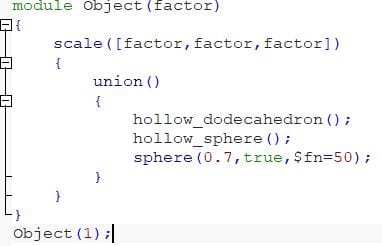 As an example I have designed this nested object to further illustrate how to use OpenScad.