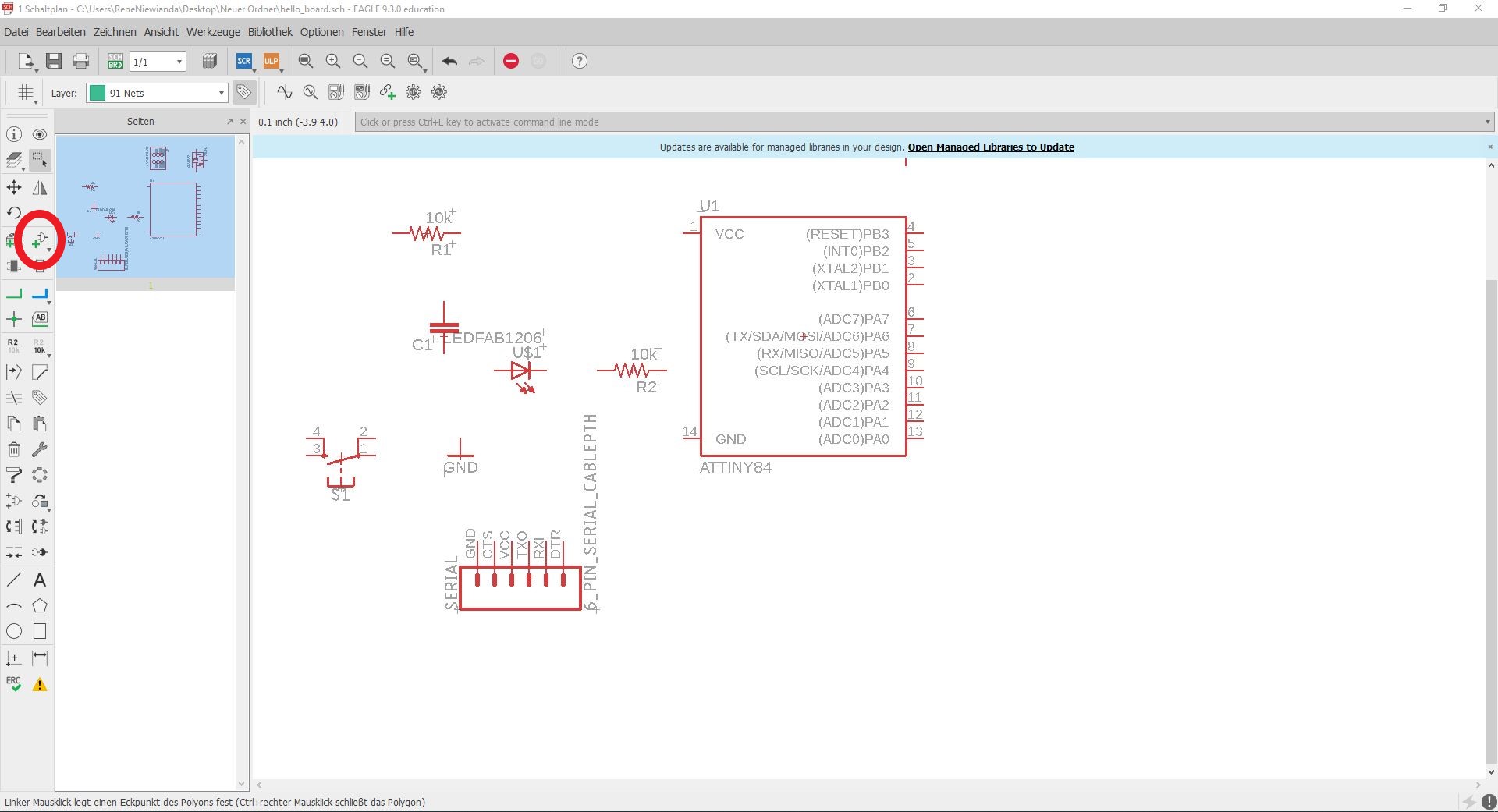 In this weeks Assignment we had to design our own version of the "Hello-World-Board" by adding some components (LED + button).