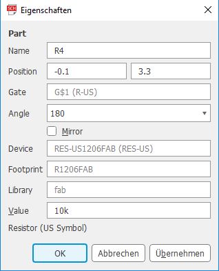 First I added some of the parts i needed for the board by pressing the add-part-Button. When the button