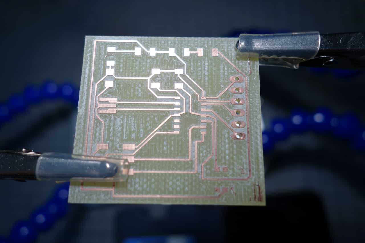 I milled this board but while soldering I saw that some of the copper connection where broken on the PCB.