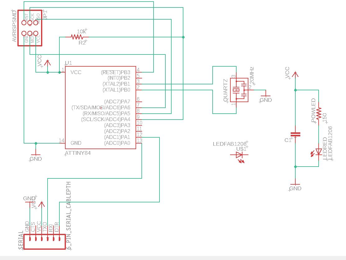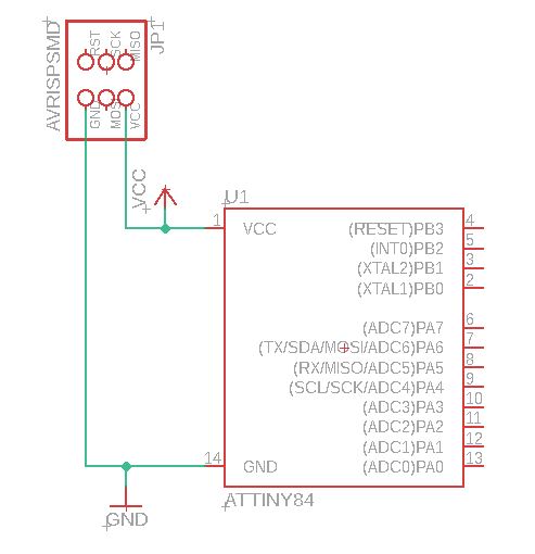 I could not find a ATtiny44 in the library so I had to use the ATtiny84 for this schematic, since both have the