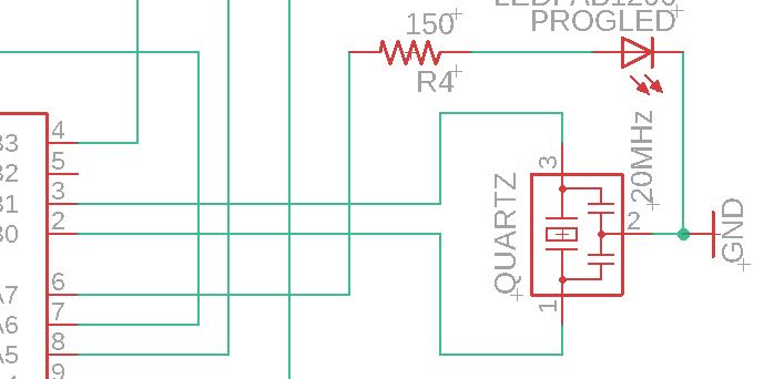 Now I took the parts I needed for the power-indication-led and the capacitor (which protects the microcontroller from voltage spikes)