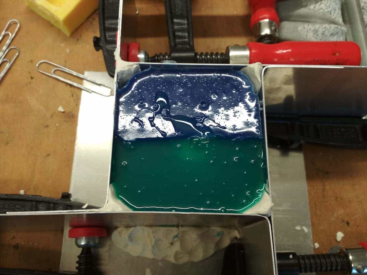 When everything was sealed up I mixed the second batch of silicone and poured it into the mold. Here